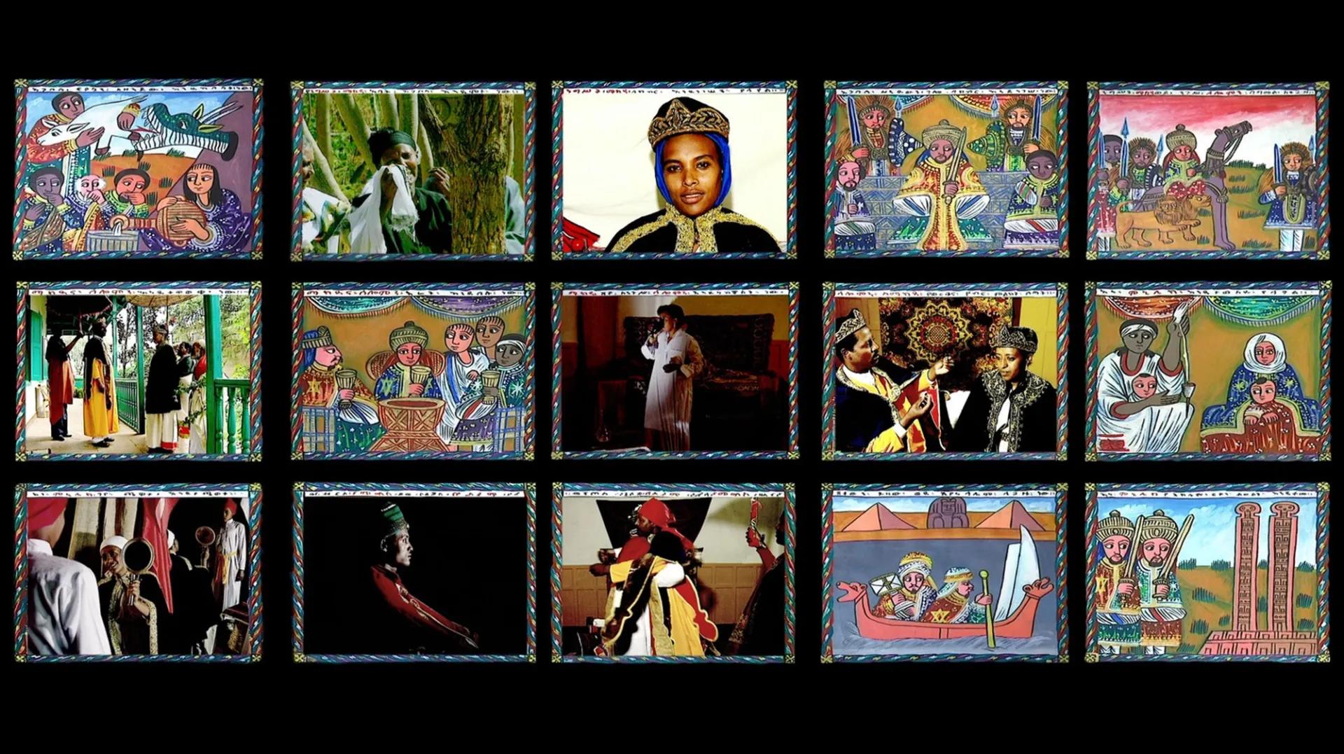 Le parcours présente dans sa dernière salle des œuvres contemporaines de Tsedaye Makonnen, un artiste américain d’origine éthiopienne, et de Theo Eshetu, un artiste britannique d’origine éthiopienne. Ces œuvres entendent présenter « les thèmes de la mémoire et de l’héritage présents dans l’exposition » selon un cartel présent dans la salle. Mais de quels mémoires et héritages s’agit-il ? Les œuvres contemporaines réinterprètent les textiles et les textes, les motifs et les lieux. Mais elles s’éloignent du reste de l’exposition en prenant fermement position sur le violent rejet des Éthiopiens par ceux qui se trouvent de l’autre côté de la Méditerranée et sur le transfert des artefacts culturels et religieux, tels que ceux que l’on peut voir tout au long de l’exposition. Tsedaye Makonnen et Theo Eshetu assument la responsabilité d’aborder les questions de l’exploitation coloniale et des pillages fréquents dans l’histoire de l’art et des musées.
