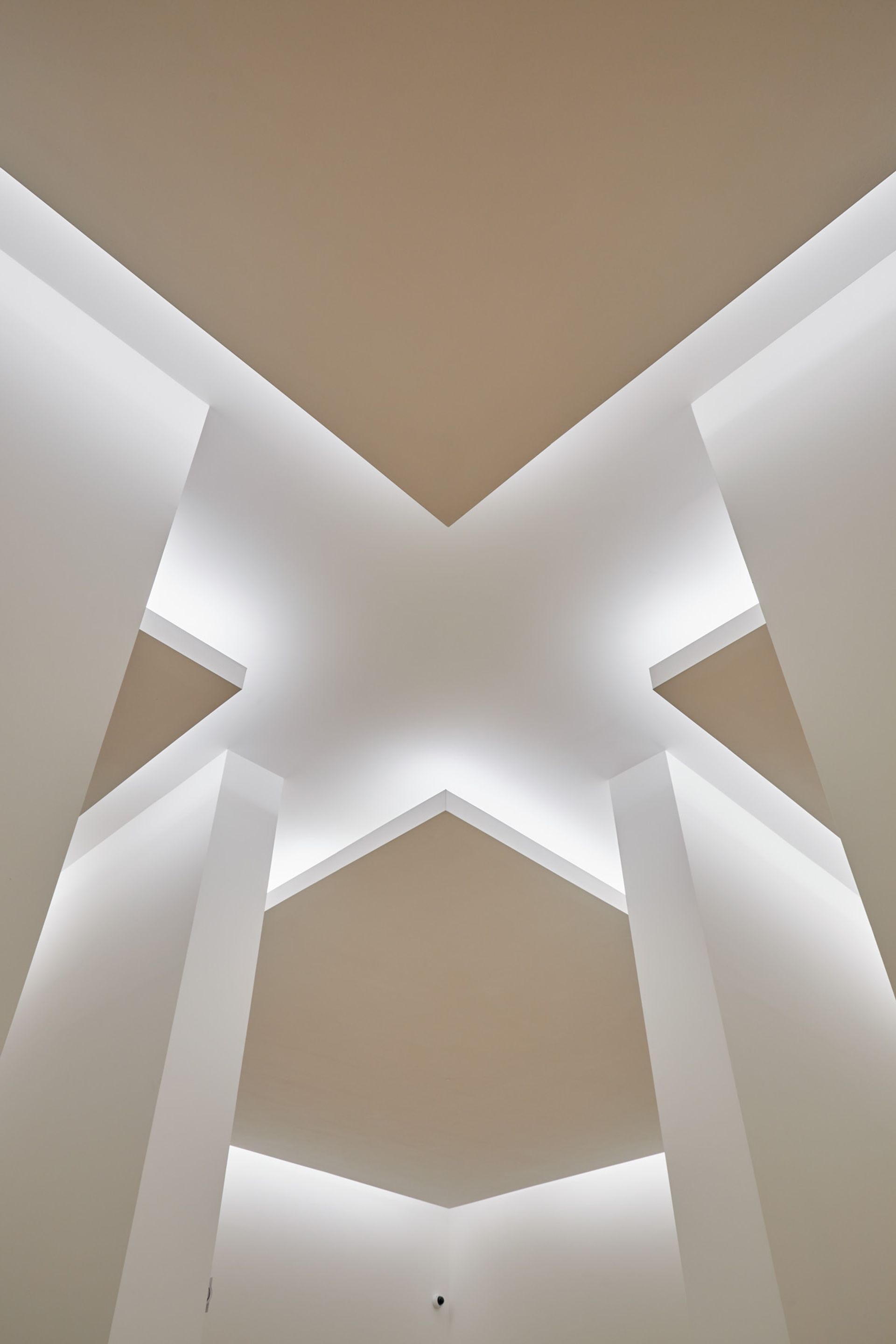 Une fois quittée la partie ancienne, le visiteur débouche dans l’aile neuve pile-poil face à deux formes triangulaires inversées – d’abord une paroi, puis une fenêtre –, un jeu inhabituel dans le vocabulaire de Siza, mais qui permet d’« attirer l’attention sur le fait que vous entrez dans un autre bâtiment » (dixit l’architecte portugais).