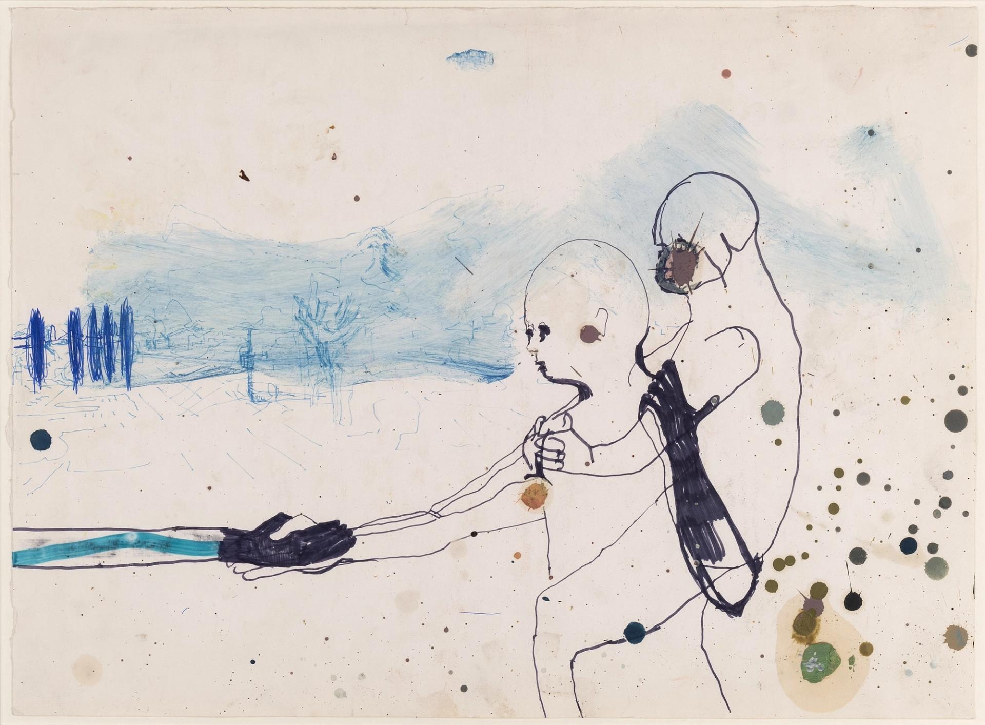 Amir Nave, Untitled, 2018, crayon et huile sur papier, 35 x 47,5 cm.