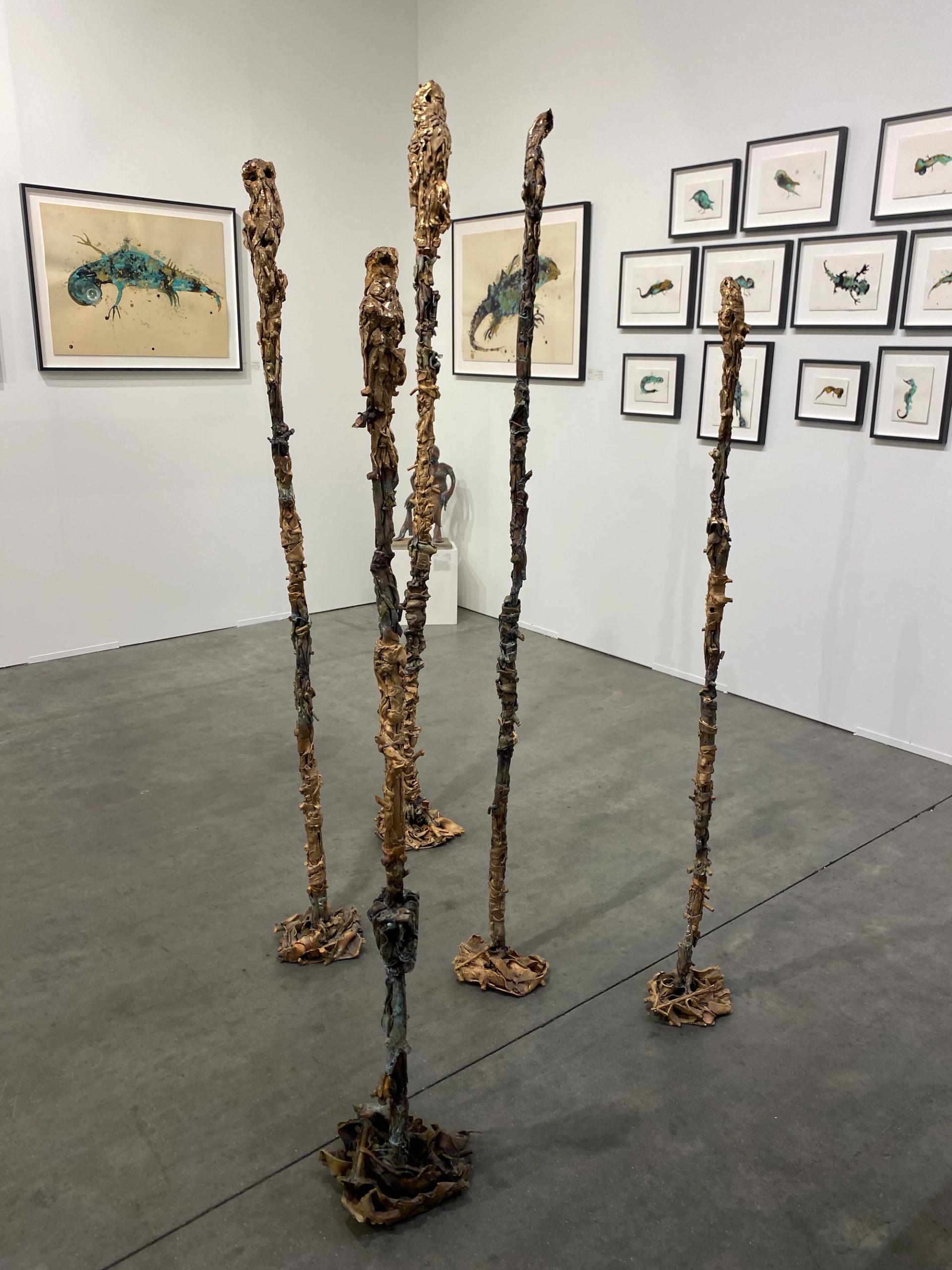 Lionel Sabatté, série « Champs d’oiseaux » (bronze, 2023) sur le stand de la galerie Laurentin. Photo B.M.