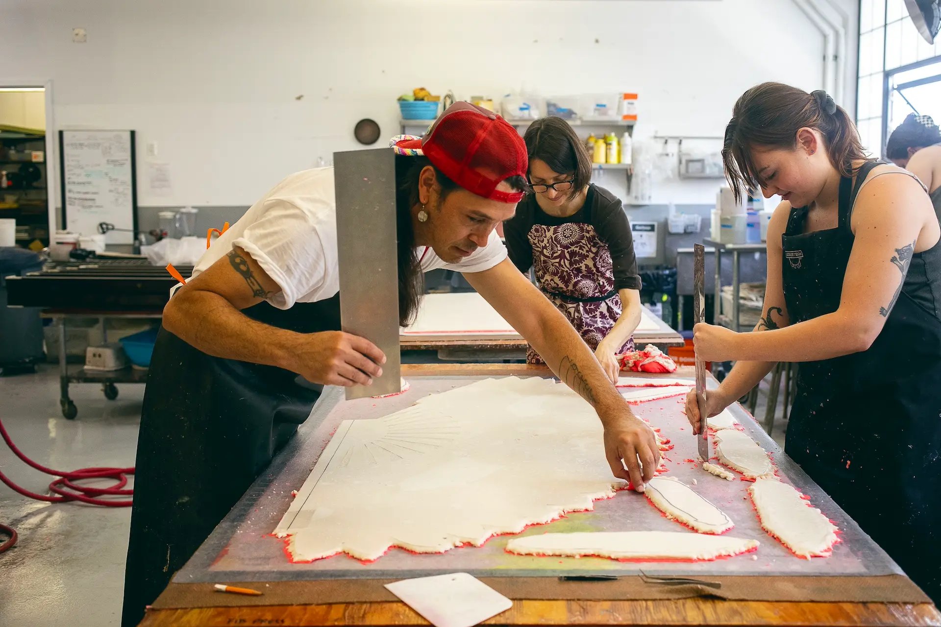 Cannupa Hanska-Luger au travail dans l'atelier de Dieu Donné. Courtesy de l'artiste et Dieu Donné, New York. Photo : Melody Melamed