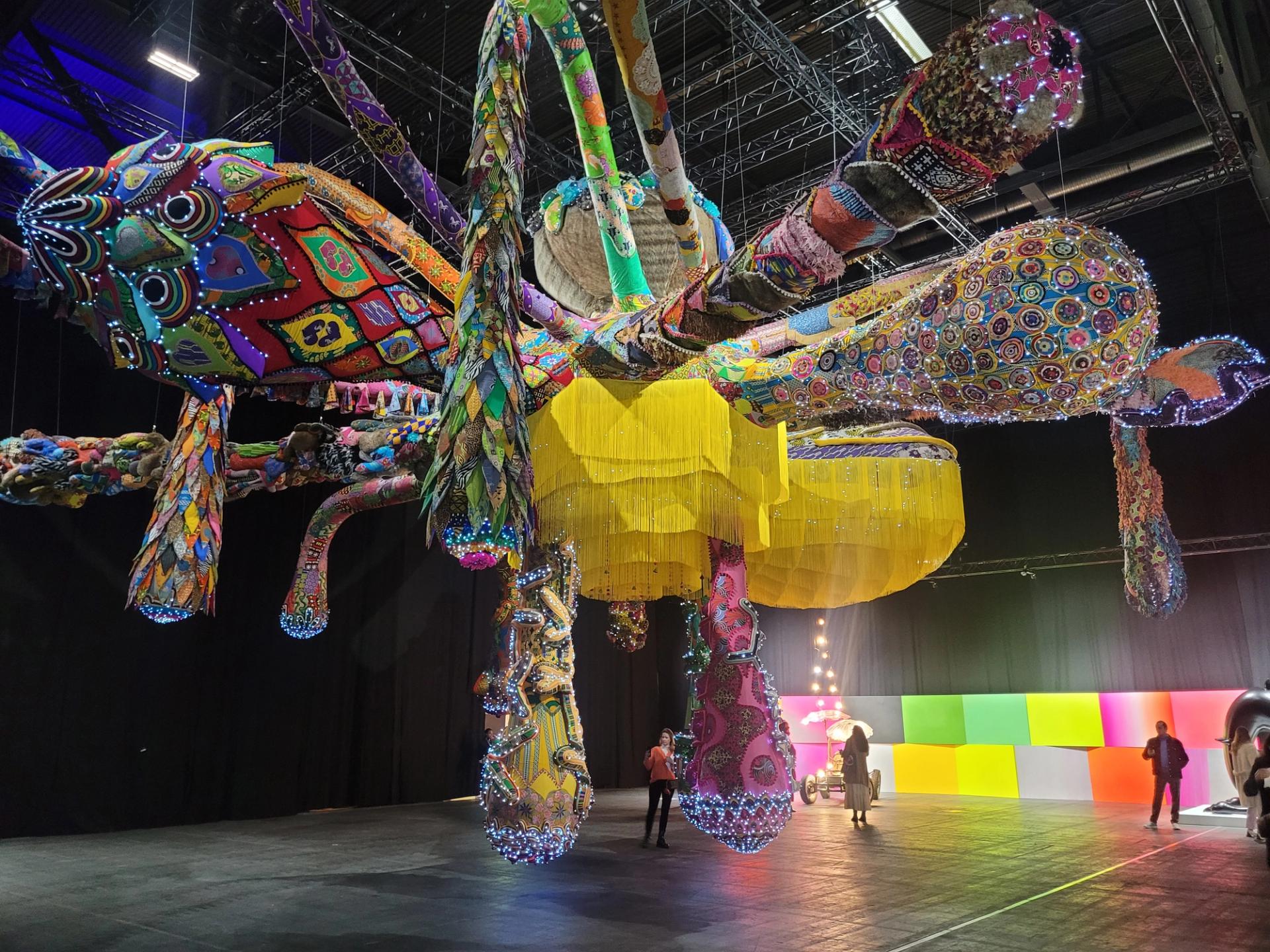 Cet hiver, la sage Genève fait la foire. Alors que l’ambiance mondiale incite à la morosité en ce début d’année, la cité helvète, plus connue pour son goût pour le minimalisme et le conceptuel, s’encanaille. Le galeriste Olivier Varenne présente une exposition dans un ancien cinéma porno. Au Musée d’art et d’histoire, invité par Marc-Olivier Wahler, Wim Delvoye fait passer un circuit à billes géant à travers des tableaux de Picasso et des gravures de Piranèse. « Je suis un enfant », glisse, malicieux, le trublion belge. À artgenève, c’est Nicolas Trembley qui incite les visiteurs à retomber en enfance. Le commissaire du tout nouveau secteur baptisé Sur mesure, dédié aux formats monumentaux, a réuni une énorme Valkyrie Mumbet de Joana Vasconcelos évoquant les « pieuvres » des fêtes foraines, mais aussi un buggy et des panneaux pop de Blair Thurman, un drôle de toboggan d’Oli Epp, un nain de Paul McCarthy et enfin un grand panorama mi-réjouissant mi-inquiétant de Dominique Gonzalez-Foerster. Comptez 1,5 million d’euros pour l’installation textile de Joana Vasconcelos, proposée par la galerie Gowen Contemporary de Genève. « Cette section n’est pas faite sur le modèle d’Unlimited à Art Basel, confie Nicolas Trembley. En effet, ici, il s’agit d’une exposition où les œuvres dialoguent entre elles, d’un projet davantage curaté ». Mais derrière la « Fun fair » esquissée par le commissaire, les œuvres interpellent souvent le visiteur…