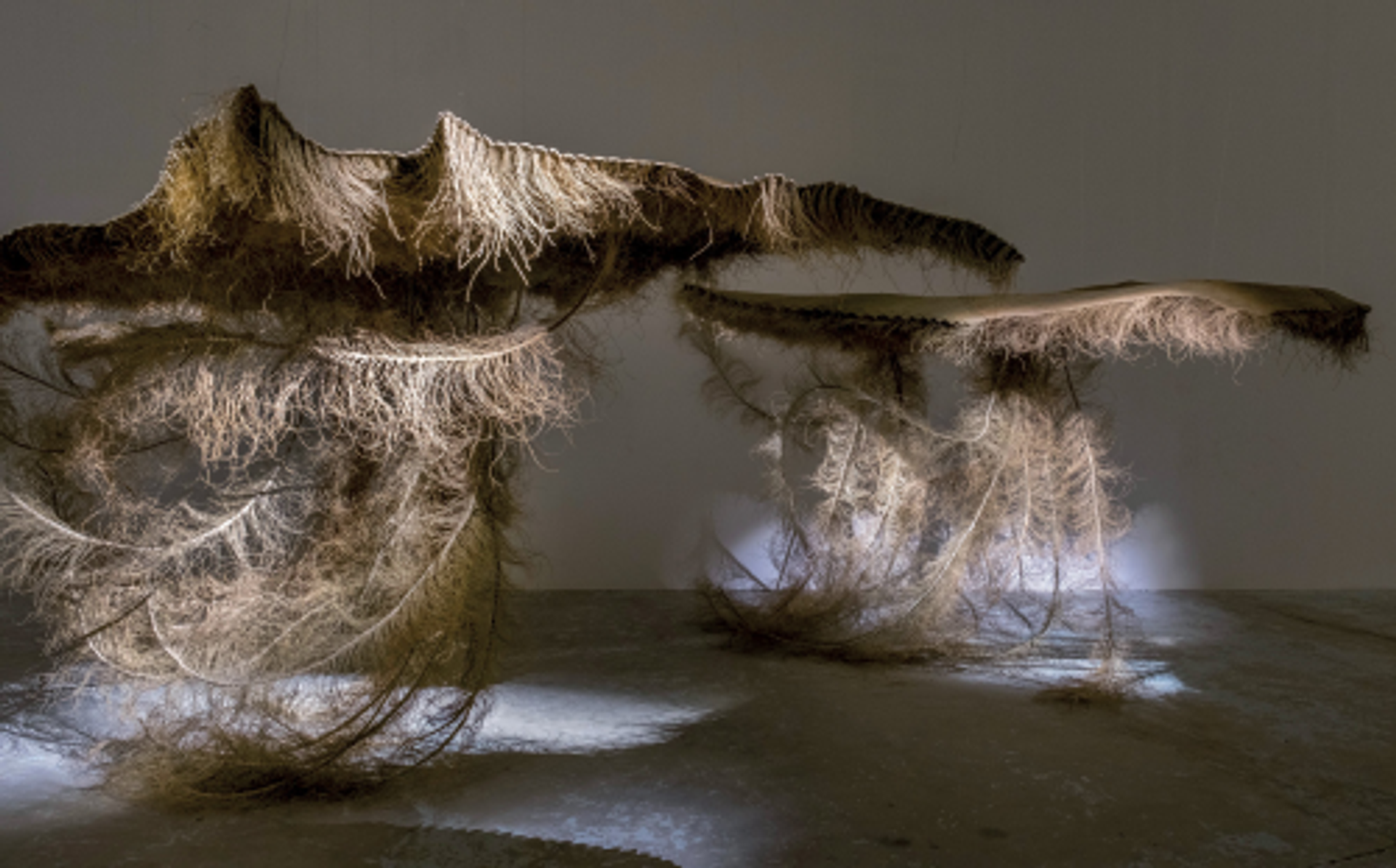 Najah Zarbout, Flying Archipelago (détail), 2023, installation d’alfa et bande sonore, avec la collaboration de Mahbouba, Fatma, Gouta, Mabrouka, Massouda et Meriam Hleli (Kasserine) pour le tissage et Étienne Gillet pour la composition sonore. Photo Nicolas Fauqué pour Talan l’Expo
