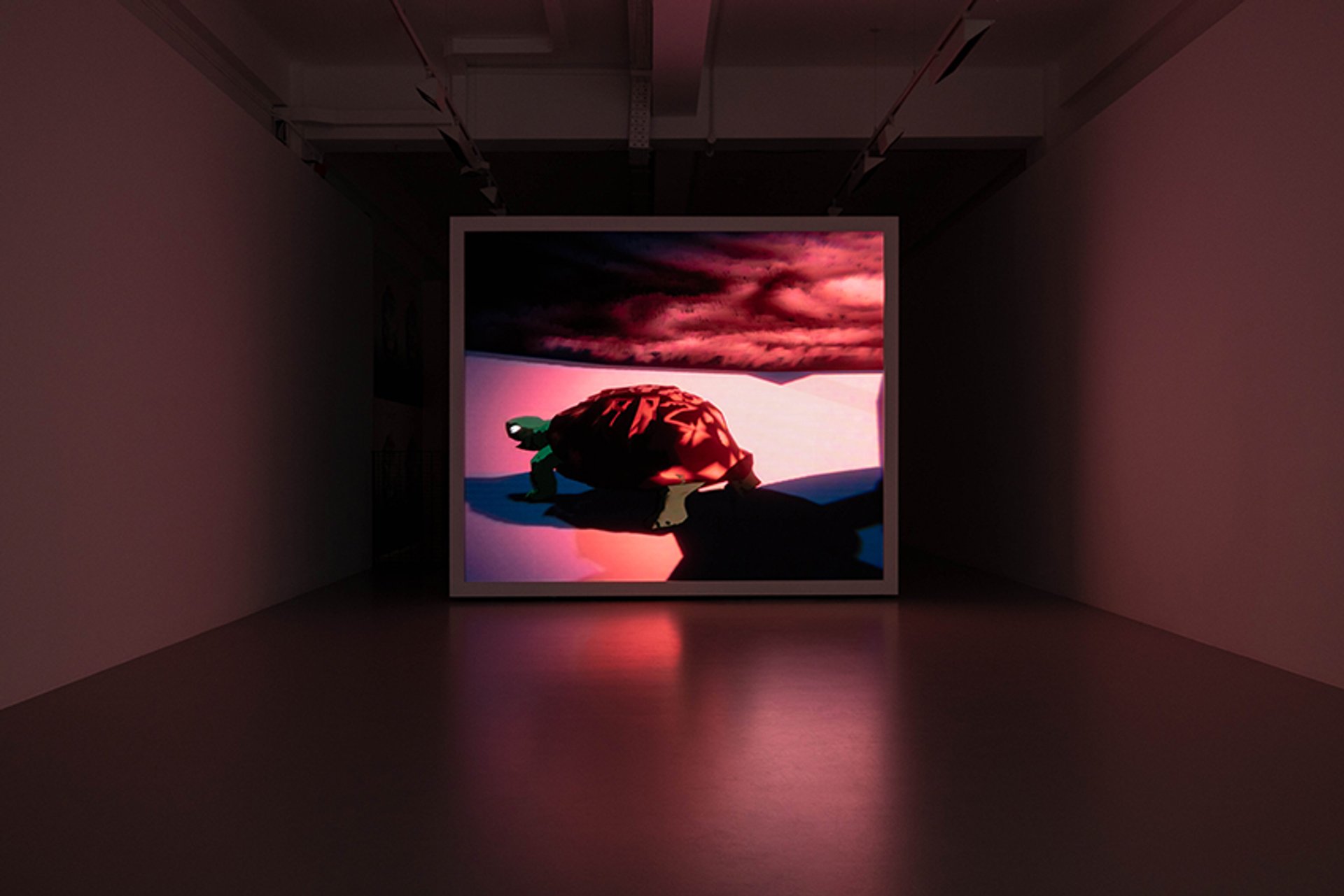 Une touche d’humour ponctue l’exposition avec Thousand Lives (2023) de l’artiste américain Ian Cheng. Ce nouveau travail de simulation suit une tortue de compagnie dénommée Thousand. Son existence étant régie par l’intelligence artificielle, Thousand doit apprendre à vivre dans l’appartement de son propriétaire. L’œuvre nous sensibilise au rôle de l’intelligence artificielle dans le futur de la planète.