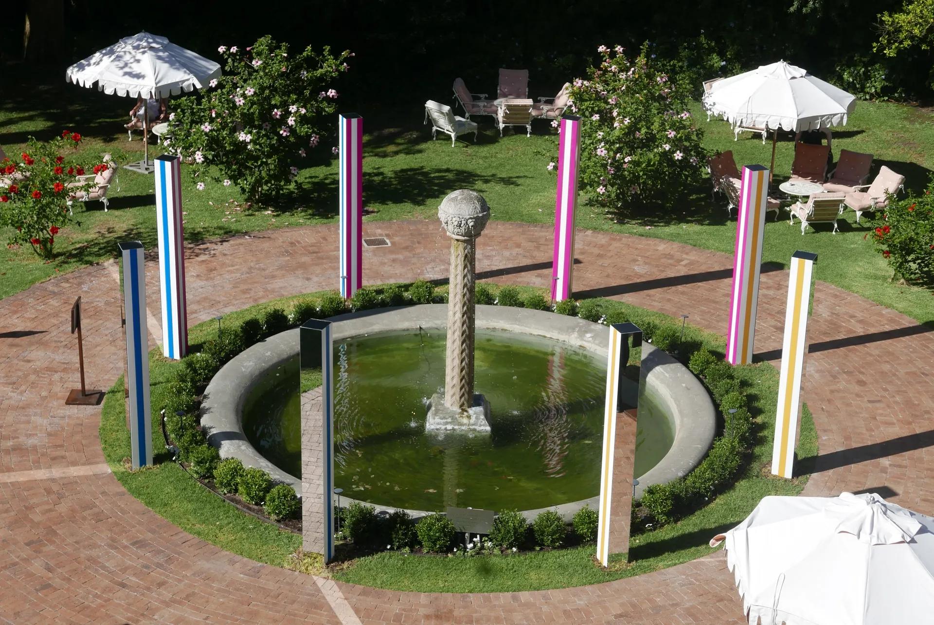L'œuvre de Daniel Buren dévoilée dans les jardins de l'hôtel Mount Nelson au Cap, en Afrique du Sud. © DB-ADAGP