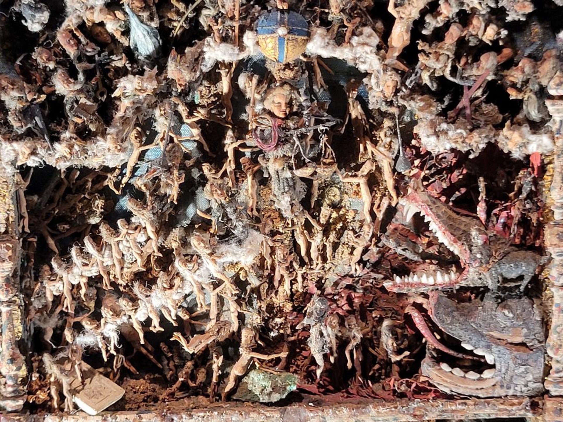 Spécialiste des Kunstkammer, la galerie Georg Laue de Munich présente dans un cabinet intimiste cet étonnant autel miniature rempli d’une myriade de personnages lilliputiens en bois de rose et ornés de perles, de pierres précieuses, de plumes de colibri ou même de gueules de crocodiles en peau de reptile… Selon les recherches de la galerie, il s’agit d’une des plus importantes œuvres d’art religieux créé au Mexique à la suite de la Conquista espagnole… Prévoir un budget conséquent : 850 000 euros.