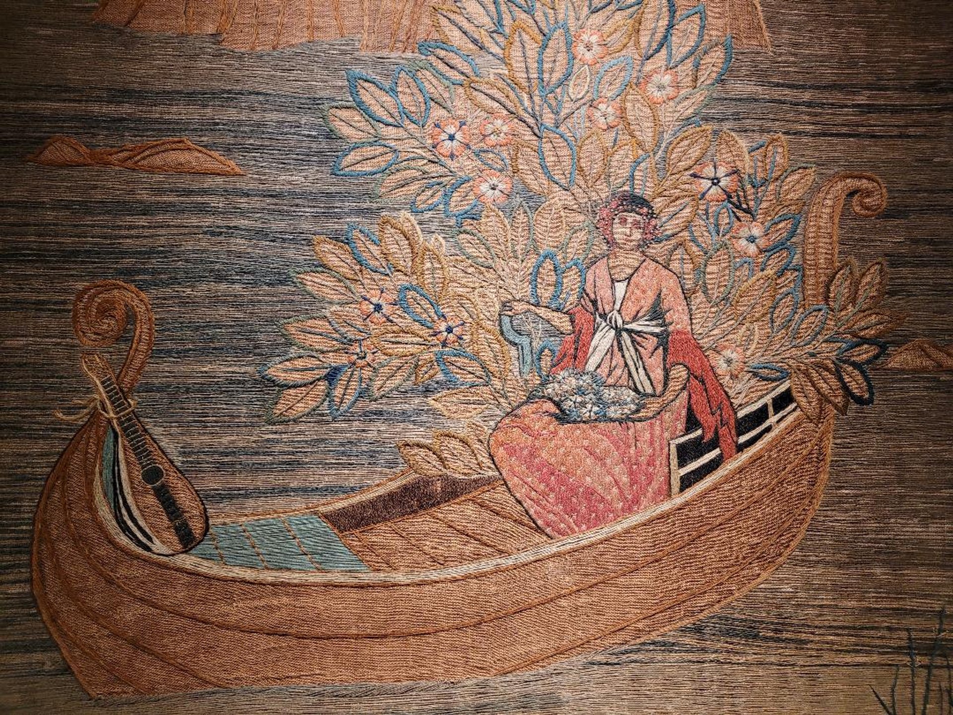 Mary Jane Newill, tapisserie « The Idle Lake, vers 1899, 175 x 113 cm (détail). Galerie Oscar Graf. Photo A.C.