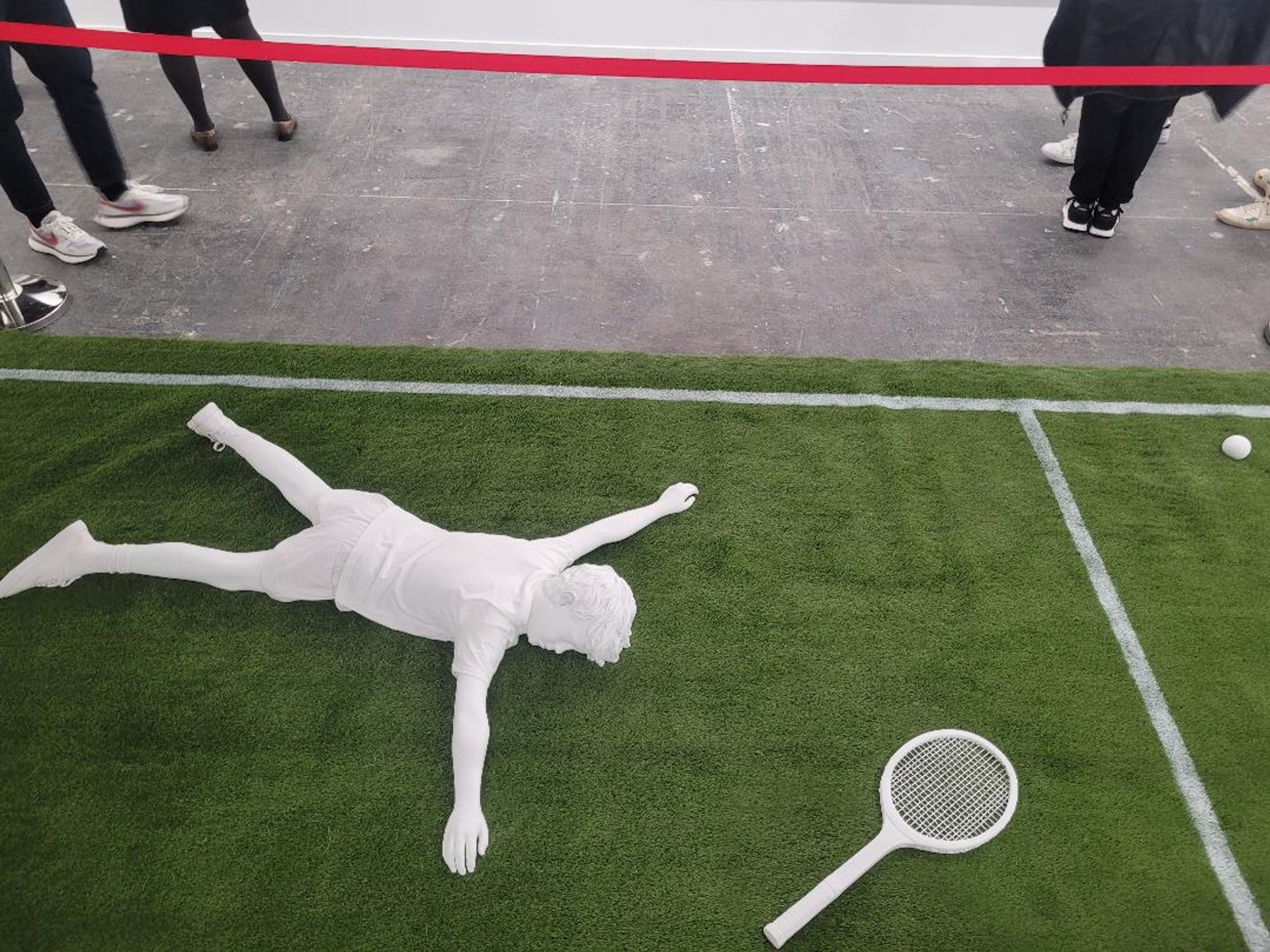 Les grands noms de l’art contemporain n’étaient pas absents comme Olafur Eliasson dont une suspension-miroir a été vendue « à une institution espagnole » par la galerie Elvira Gonzáles (Madrid) pour « moins de 500 000 euros » ; Peter Halley chez Senda (Barcelone) ou Elmgreen & Dragset avec un jeune joueur de tennis étendu épuisé sur le gazon du cours chez Helga de Alvear (Madrid). Ou encore certains projets spécifiques associés à la foire comme l’installation de l’Américano-nigériane Precious Okoyomon (qui représentera le Nigeria à la Biennale de Venise) dans le parc de Retiro, organisé par la Fondation Sandretto Re Rebaudengo avec Hans Ulrich Obrist.