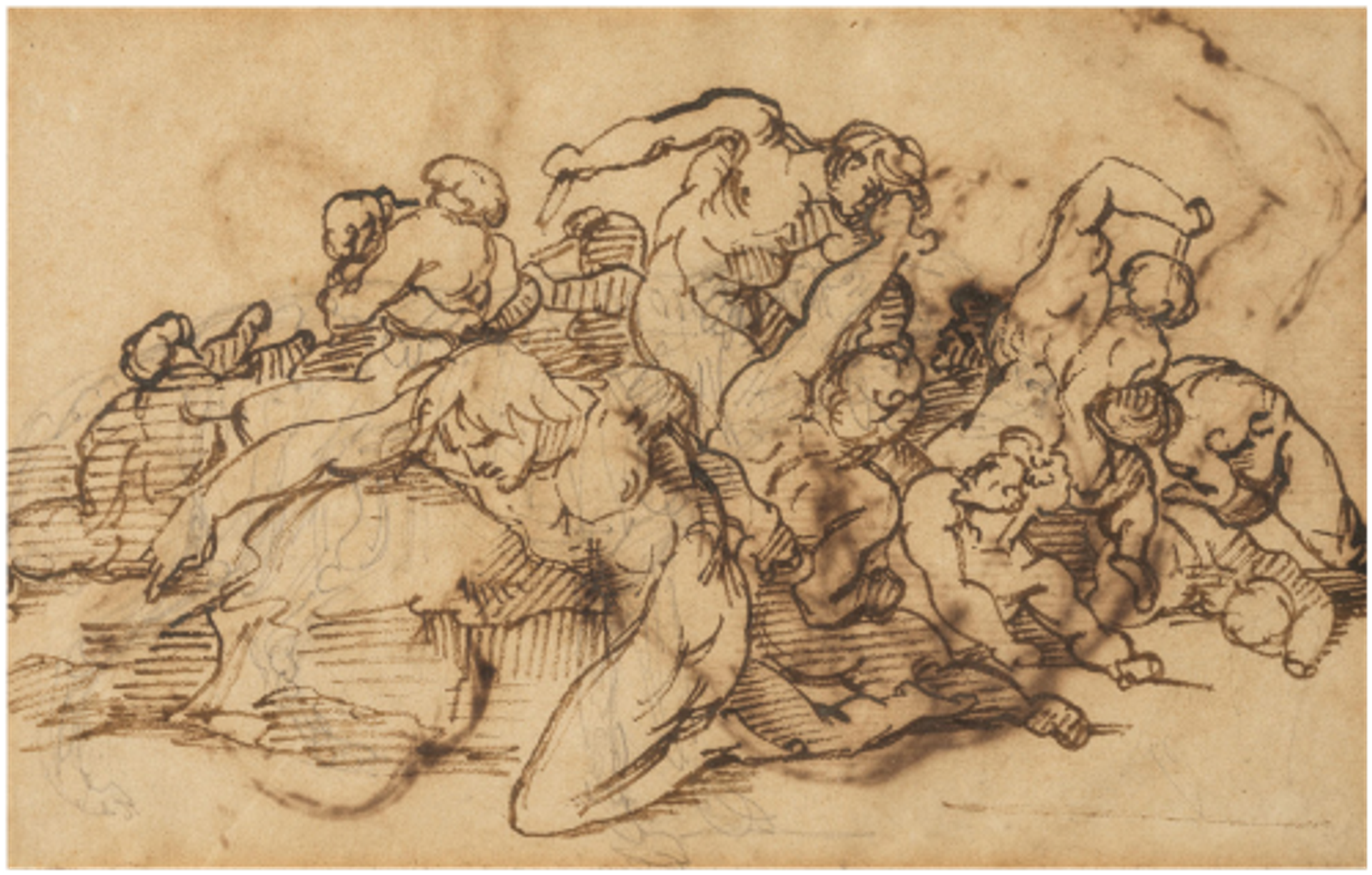 Théodore Géricault, Étude pour « Le Radeau de La Méduse », pierre noire, plume et encre brune, est. 25 000-30 000 euros. © Bonhams Cornette de Saint Cyr