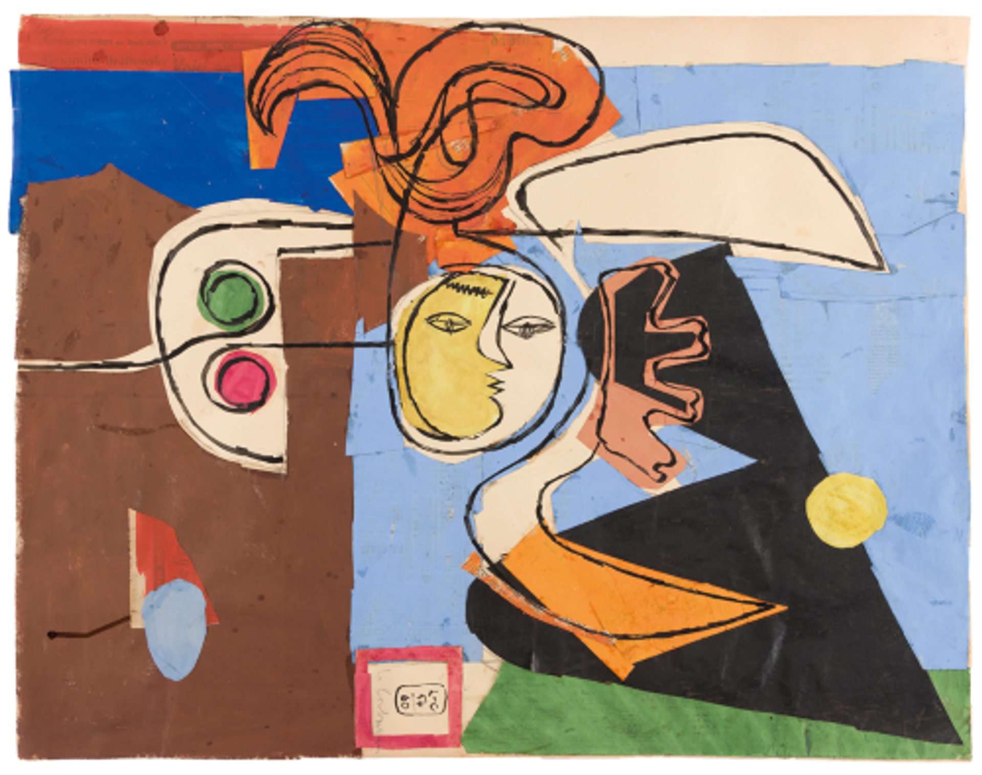 Charles-Édouard Jeanneret dit Le Corbusier, Taureau VI (variante de Taureau VI de 1954), 1960, collage de divers papiers gouachés, papier bitumé et encre de Chine sur papier, est. 30 000-50 000 euros. © Ader