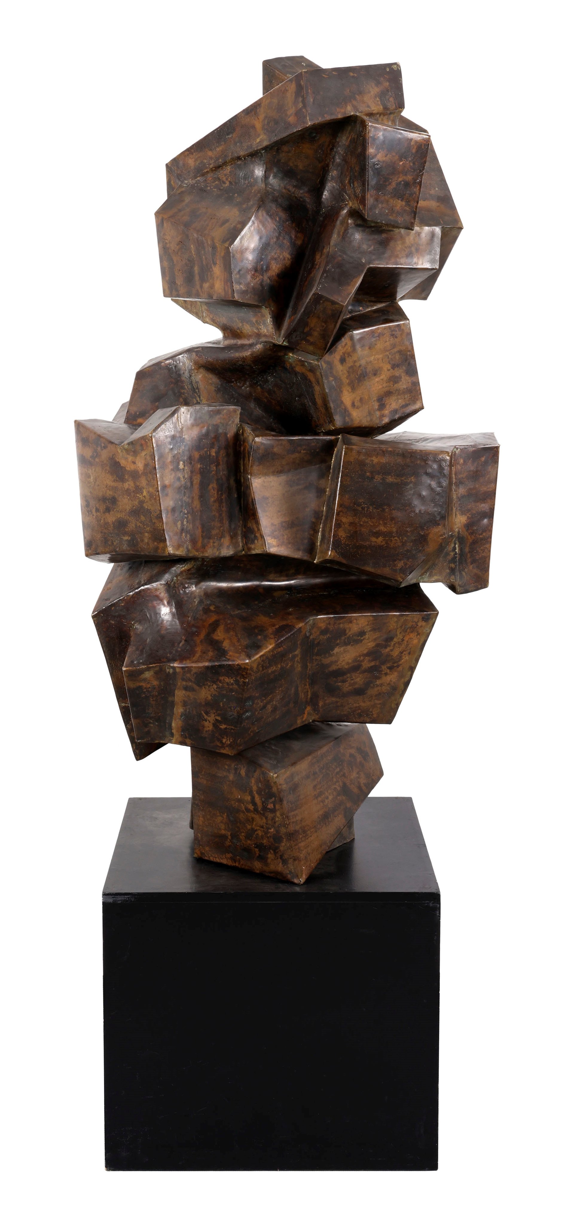 Bloc, lui, est un architecte d’avant-garde, fondateur des revues Architecture d’aujourd’hui en 1930 et Art d’aujourd’hui en 1949. C’est un ami de Le Corbusier. Un urbaniste engagé qui défend le constructivisme tout comme les arts cinétiques et abstraits. Les deux artistes ont tous les deux choisi de faire de leur lieu de vie un espace totalement dédié à leur œuvre : Robert Tatin construit pendant plus de 20 ans, entre 1960 et 1983, son Étrange musée près de Laval, synthèse des arts et de l’artisanat. André Bloc, dès 1952, fait du parc de sa maison de Meudon, un jardin de création où se dressent les monumentales Sculptures habitacles I et II, synthèse de l’art et de l’architecture. Deux collections, proposées par la maison de ventes Pascal Blouet, permettent de croiser les deux œuvres. Trois huiles sur toile de Robert Tatin – Oser, de 1970 (est. 15 000-20 000 euros) ; Vacance, de 1978 (est. 15 000-20 000 euros) et Fleurs de cerisier, de 1966 (est. 6 000-8 000 euros) feront écho aux propos du célèbre critique Otto Hahn, qui formule ainsi les intentions de l’artiste : « Montrer simplement où se cache la vie ». Les deux sculptures, réalisées à la fin des années 1950 par André Bloc, l’une en cuivre (est. 40 000-60 000 euros) et l’autre en plâtre (est. 12 000-15 000 euros) préfigurent les Sculptures habitacles et illustrent le manifeste du groupe Espace créé en 1951 par l’artiste et par Félix Del Marle : « Favoriser la collaboration indispensable du peintre, du sculpteur et de l’architecte ».