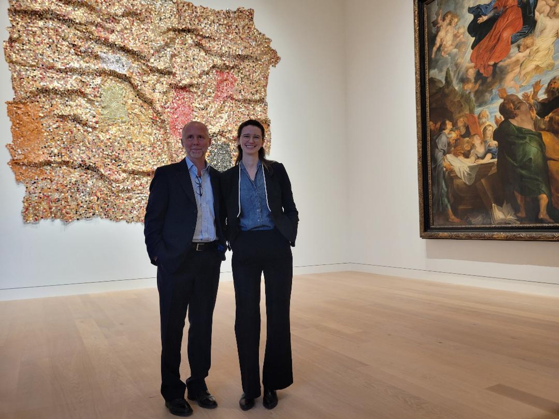 Felix Krämer, directeur du Kunstpalast, et sa conseillère, Westrey Page, devant des oeuvres d'El Anatsui et de Rubens. Photo A.C.