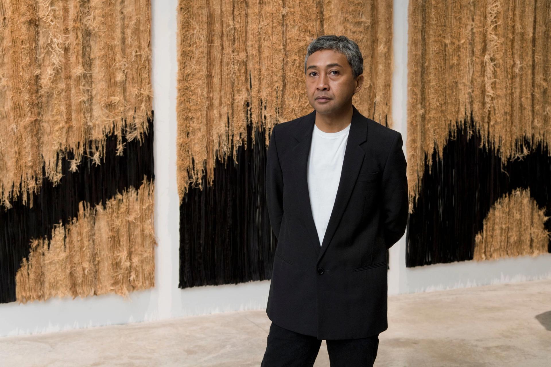 Joël Andrianomearisoa bénéficie d’une triple actualité. Il est présent sur le stand d’Almine Rech à la Foire Art Paris qui s’achève dimanche 7 avril 2024. Il expose pour la première fois – sous le commissariat de Jérôme Sans – dans cette même galerie rue de Turenne, où il a reçu l’insigne de chevalier de l’ordre des Arts et des Lettres cette semaine. Déjà présent dans plusieurs institutions aux États-Unis (Studio Museum in Harlem à New York, Smithsonian à Washington et Dallas Contemporary), son travail va rejoindre la Michael C. Rockefeller Wing du Metropolitan Museum of Art à New York dédiée à l’Océanie, à l’Afrique et aux Amériques et dont la réouverture après rénovation complète est prévue pour 2025. Entretien.