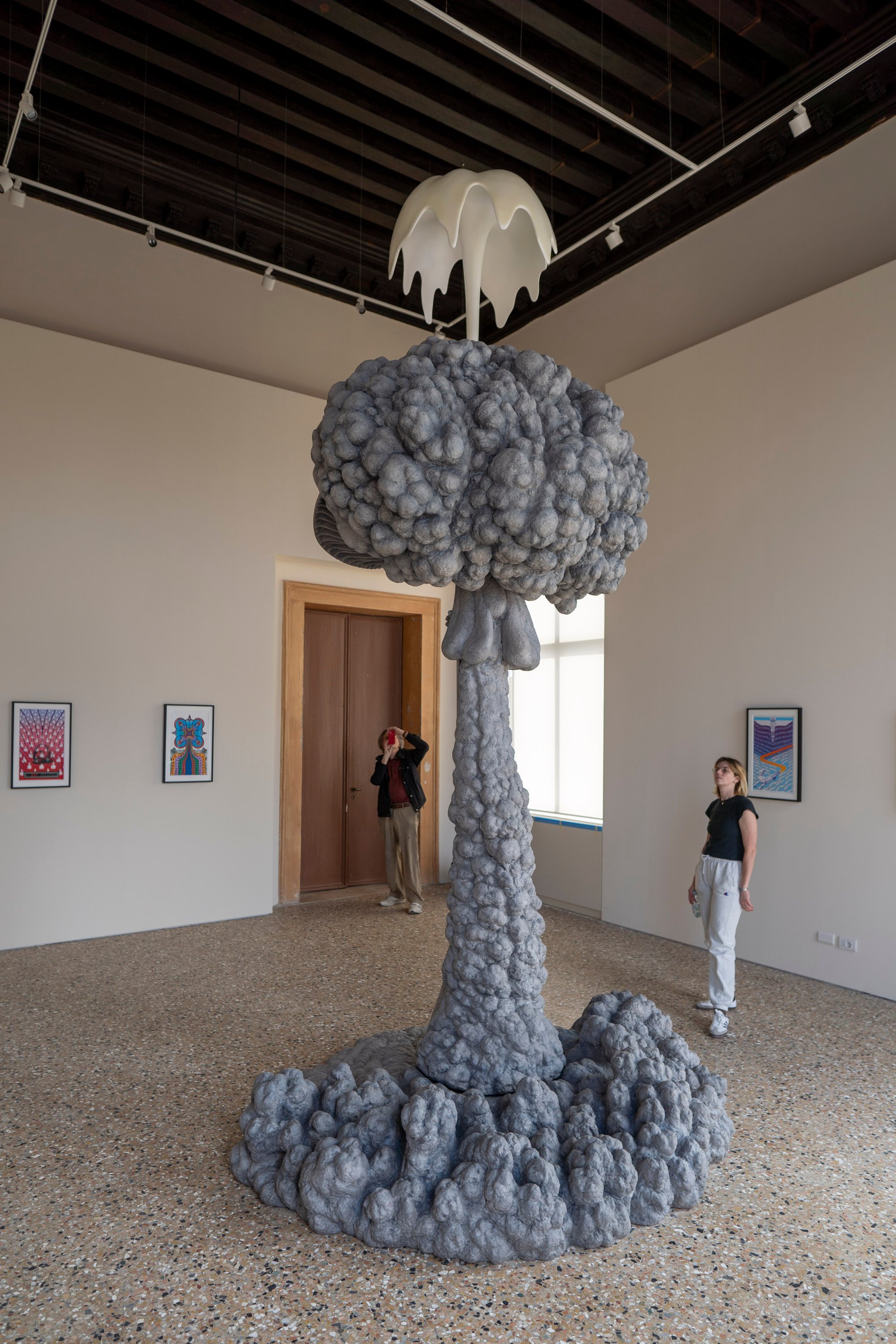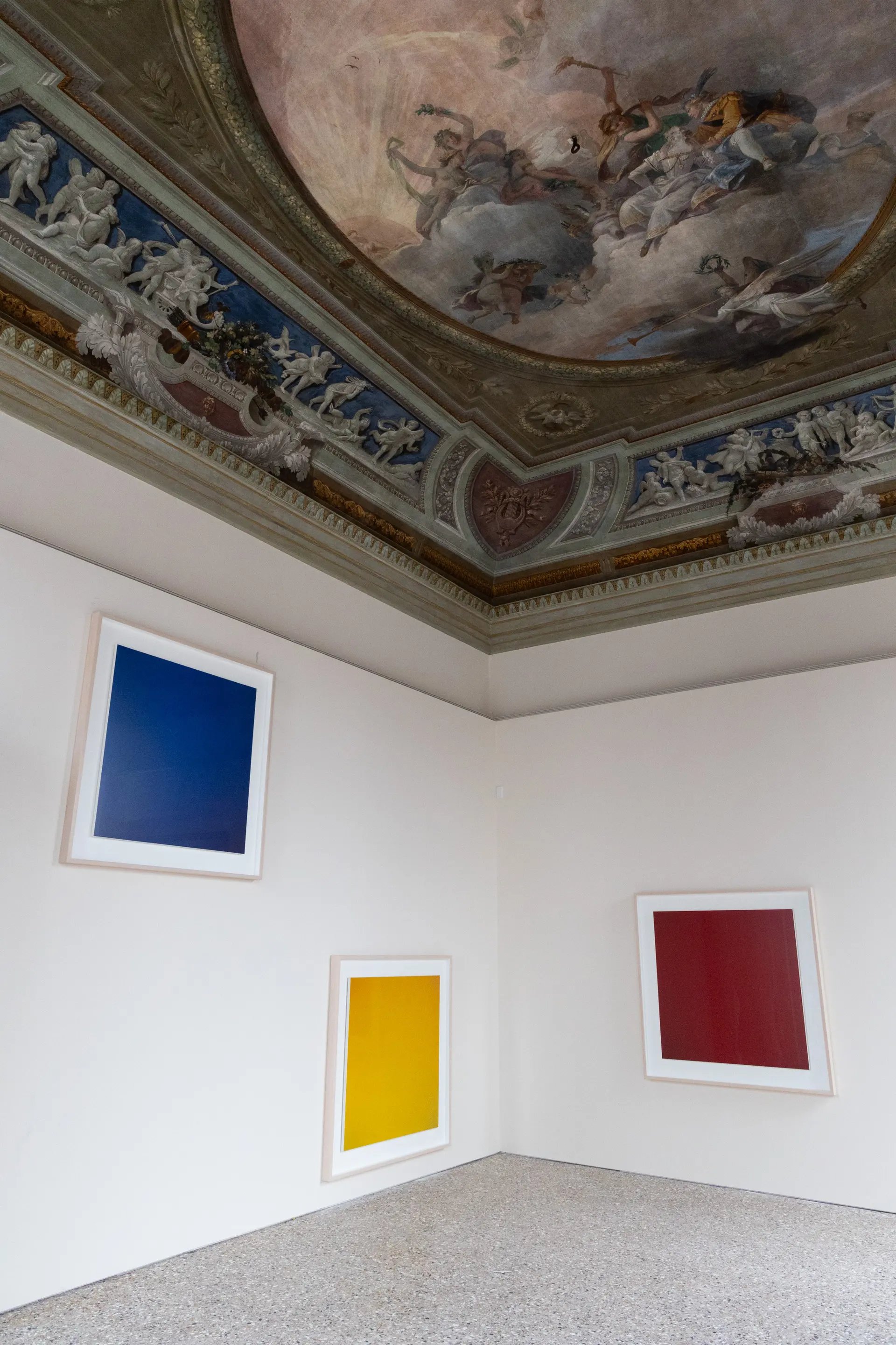 Le titre de l’exposition, « Janus », le dieu grec des transitions et des portes, fait écho à l’objectif curatorial du Palazzo Diedo : fusionner l’historique et le contemporain. À cette fin, un certain nombre de plafonds peints du bâtiment, endommagés de manière irréparable, ont été repeints par les artistes participant à l’exposition inaugurale et seront des œuvres pérennes. Deux cycles de fresques et un capricci romain (une scène combinant des éléments historiques et fictifs) des artistes du XVIIIe siècle Francesco Fontebasso et Costantino Cedini ont également été entièrement restaurés.