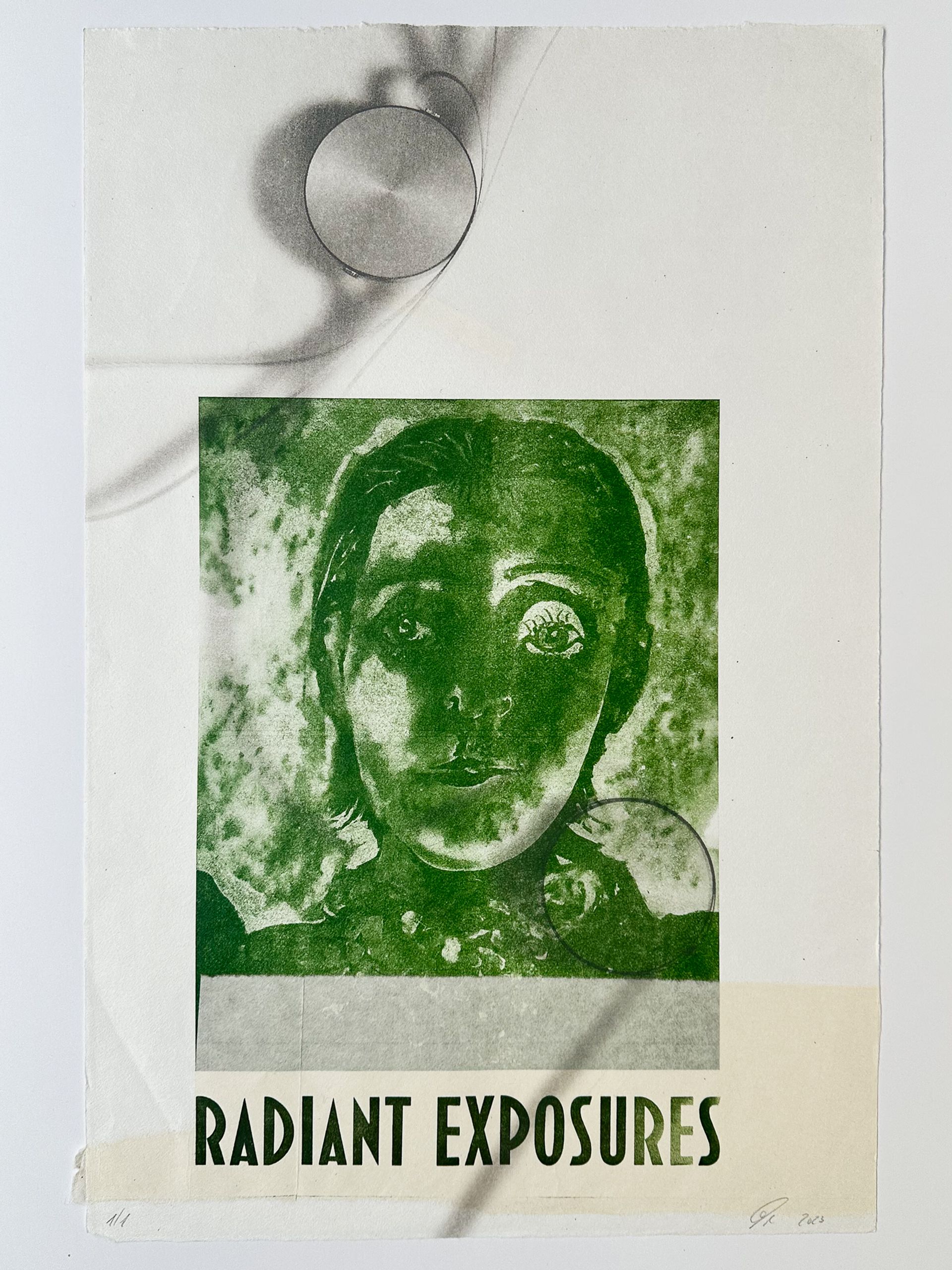 C’était complètement nouveau pour moi. J’avais déjà réalisé des sérigraphies, mais je n’avais jamais exploré auparavant les différentes possibilités d’impression. C’était passionnant. Il y a beaucoup de références, bien sûr. L’horloge de couleur, qui est une de mes pièces cinétiques, devient un élément récurrent dans cette série d’estampes. Le titre Radiant Exposures – une référence à l’un de mes récents films 16 mm – propose une lecture à plusieurs niveaux. Je voulais l’associer au portrait de Dora Maar. C’est une sorte de « réexposition » ou de révélation, ou quelque chose comme cela. J’ai utilisé des parties de mon travail comme des instruments. Ensuite, tout a été rassemblé dans ce nouveau type de laboratoire que je n’avais jamais expérimenté auparavant. M’inspirer de Dora Maar, longtemps restée dans l’ombre de Picasso – avant tout considérée comme sa muse avant d’être aujourd’hui un peu plus reconnue pour ses talents de photographe – a aussi été un choix de mettre dans la lumière une artiste femme. Mes recherches et réalisations dans les musées m’ont montré que, proportionnellement, moins de femmes étaient représentées historiquement. Heureusement, beaucoup de choses ont évolué en termes de reconnaissance des femmes au cours des dix dernières années.