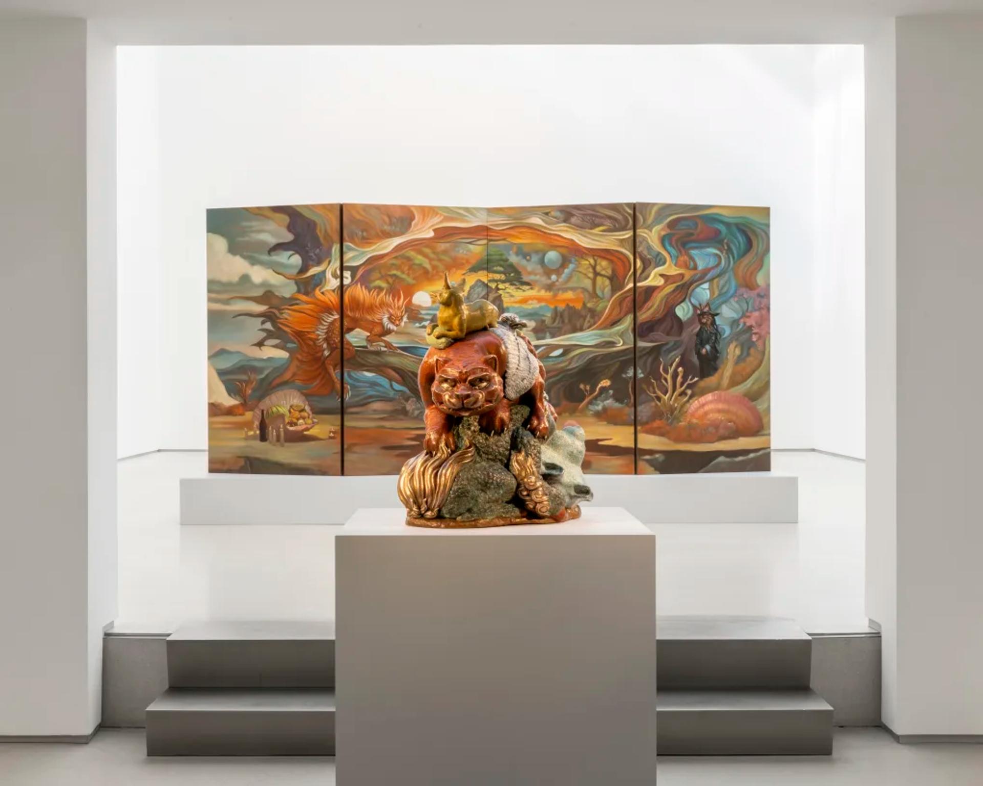 Pour cette première exposition en France et sa première collaboration avec la galerie Thaddaeus Ropac, l’artiste coréo-canadienne de 40 ans s’inspire de son héritage asiatique et de sa riche tradition mythologique. Elle vise ainsi à réinvestir les perceptions européennes de l’identité asiatique et à susciter des identités asiatiques alternatives. Elle crée pour ce faire des performances et des installations, mais aussi des peintures, des œuvres textiles et, depuis plus récemment, des sculptures en bronze. B.M.