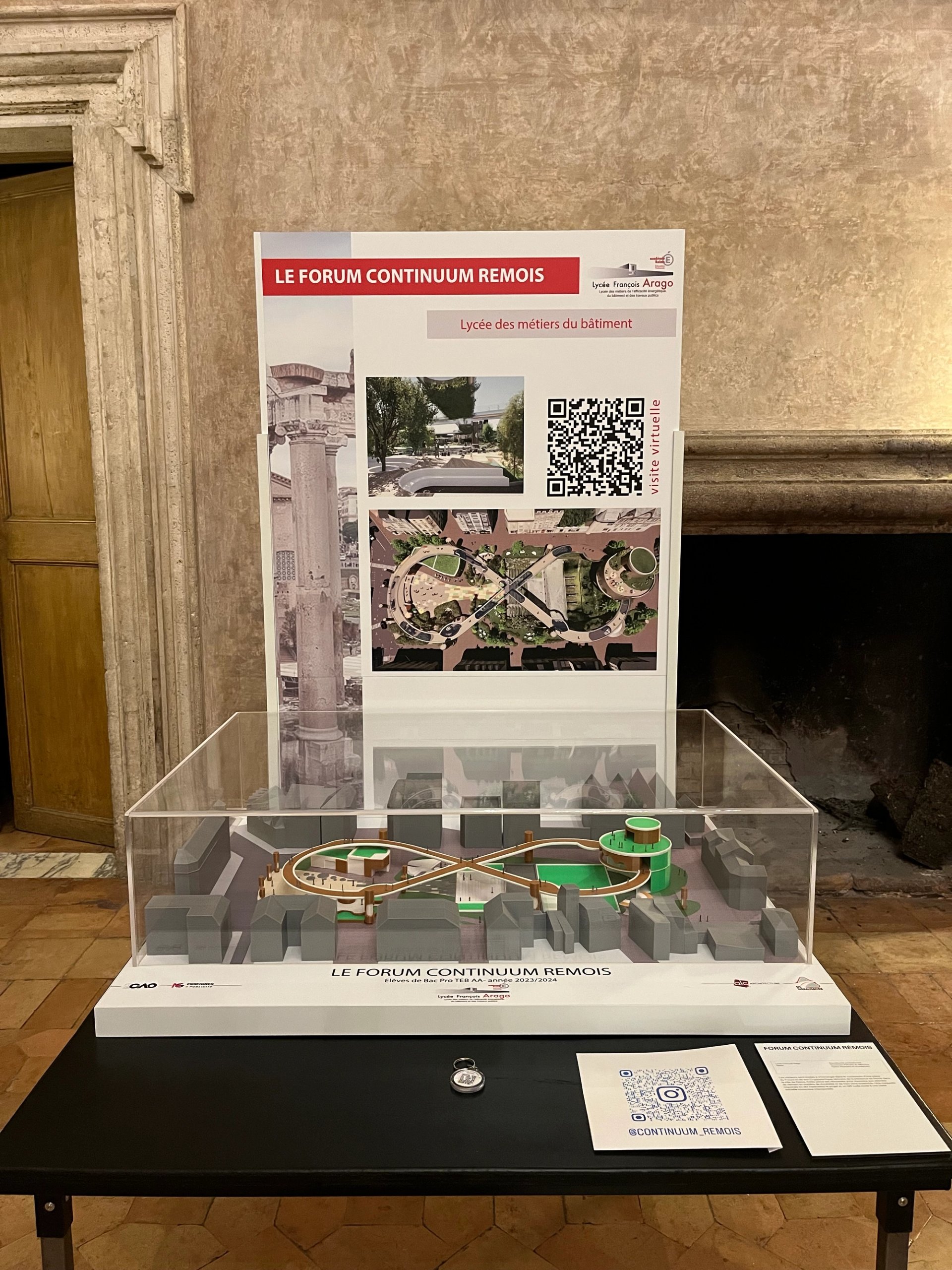 « Le Forum-Continuum Rémois », « chef-d’œuvre » présenté par les élèves du Lycée des métiers de l’efficacité énergétique, du bâtiment et des travaux publics François Arago de Reims (Marne) à la Villa Médicis. Photo : Stéphane Renault