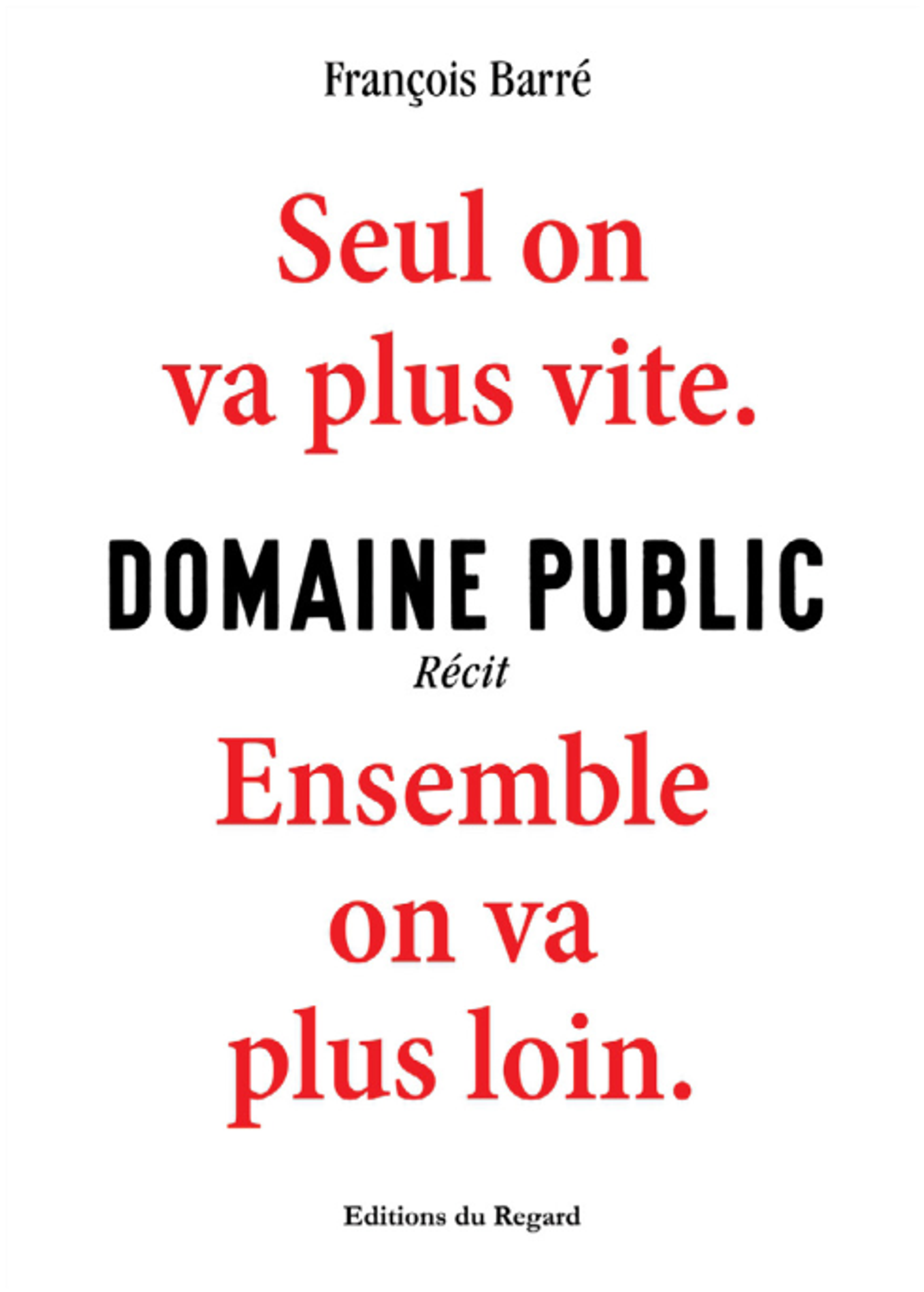 François Barré, Domaine public. Seul on va plus vite. Ensemble on va plus loin, Paris, Éditions du Regard, 2024, 336 pages, 23 euros.