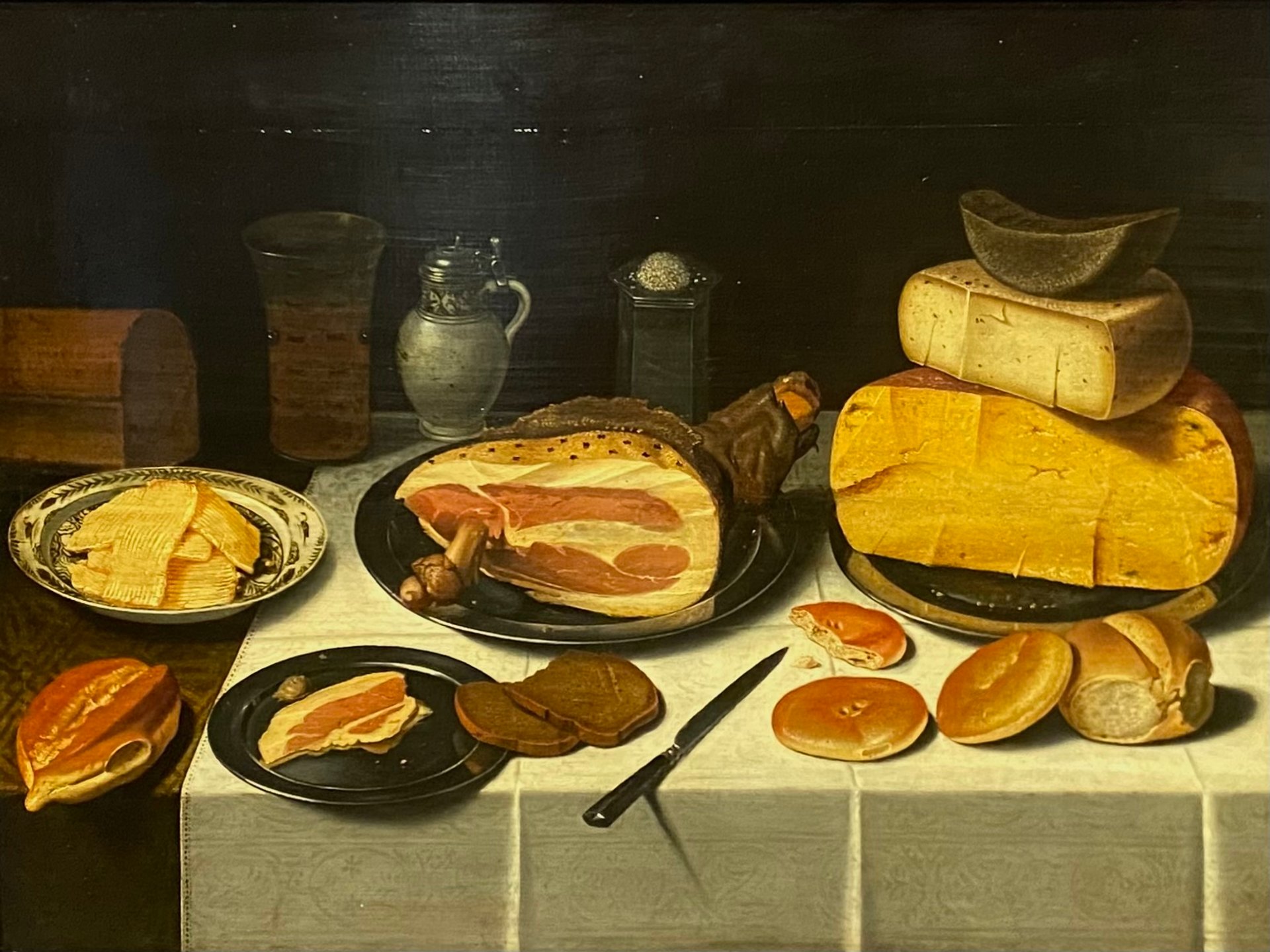 Floris van Schooten (?, vers 1588 - Haarlem, actuel royaume des Pays-Bas, 1656), Nature morte au jambon, huile sur panneau, années 1630 ?. © Musée du Louvre, Photo : Charles Gaucher