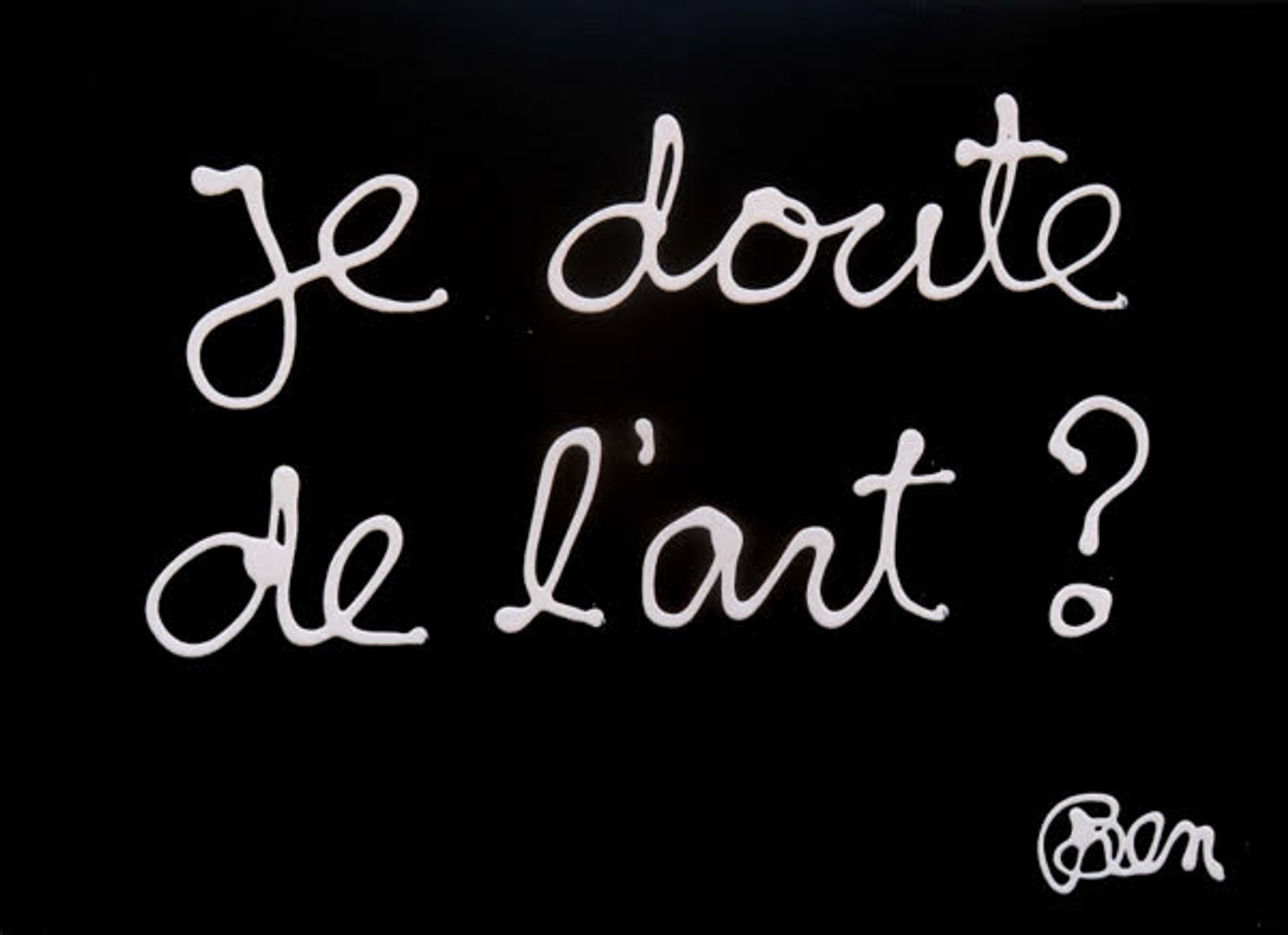 Les œuvres de Ben, présentes dans les plus importantes collections privées et publiques du monde, sont également conservées au MoMA de New York ou au Stedelijk Museum d’Amsterdam. Et ses petites phrases prêtant à réfléchir et à sourire figurent sur d’innombrables cartables, trousses et agendas d’écoliers…