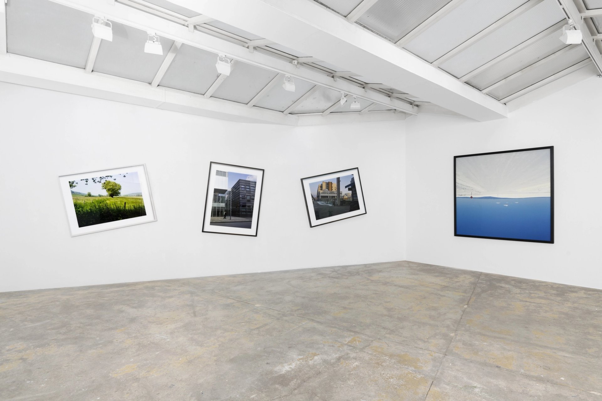 Trois grandes photos sont présentées sur un même mur, un champ, un homme qui marche dans un quartier d’immeubles, une vue de zone périurbaine décentrée. Les trois photos ont été basculées d’une vingtaine de degrés comme après une secousse. Sur le mur adjacent, une photo de route enneigée est présentée retournée. Ces quatre belles photos questionnent la notion de paysage sur le modèle de la découverte de l’abstraction. Les photos accidentelles, par leur ratage touchant, viennent en contrepoint.