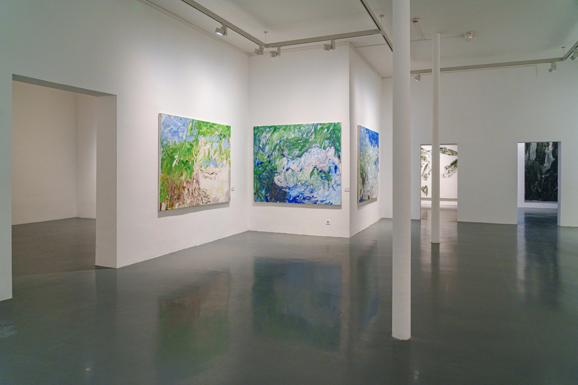 Quarante œuvres donnent corps aux différents aspects du travail pictural de l’artiste effectué entre 1989 et 2024 et dès l’entrée, au sein de ces espaces blancs, semblant comme immaculés, le regard est happé par de grandes toiles où s’épanchent des concentrations colorées, vouées à l’évocation abstraite du paysage et des impressions qu’il génère. La présence de verts printaniers et de roses laiteux fait alors signe vers une voie végétale dont l’artiste saisit miraculeusement l’élan. Los prados, une suite de dix tableaux réalisés entre 2022 et 2023, est ainsi exposée pour la première fois dans son ensemble. La matière picturale y est exaltée, l’artiste jouant souverainement d’une mobilité frémissante et tactile sur des fonds semblants comme modulés en transparence. Son geste est mesuré, déployé en traits libres et maîtrisés où la couleur se répand en ondoiements souples. Pareille puissance expressive laisse également libre cours aux soubresauts de lumière, fulgurances incarnant de manière inédite la matière des sensations. Car dans les peintures de Christian Sorg, la reproduction, au lieu d’engendrer du vraisemblable, est gage d’imprégnation et d’atmosphère, comme s’il était question de prolonger les effets du vécu. Sans que sa pratique artistique ne soit impressionniste, elle se fonde néanmoins sur l’entrelacement d’une observation et d’associations plus subtiles forgées autour du ressenti et de l’expérience physiquement éprouvée.