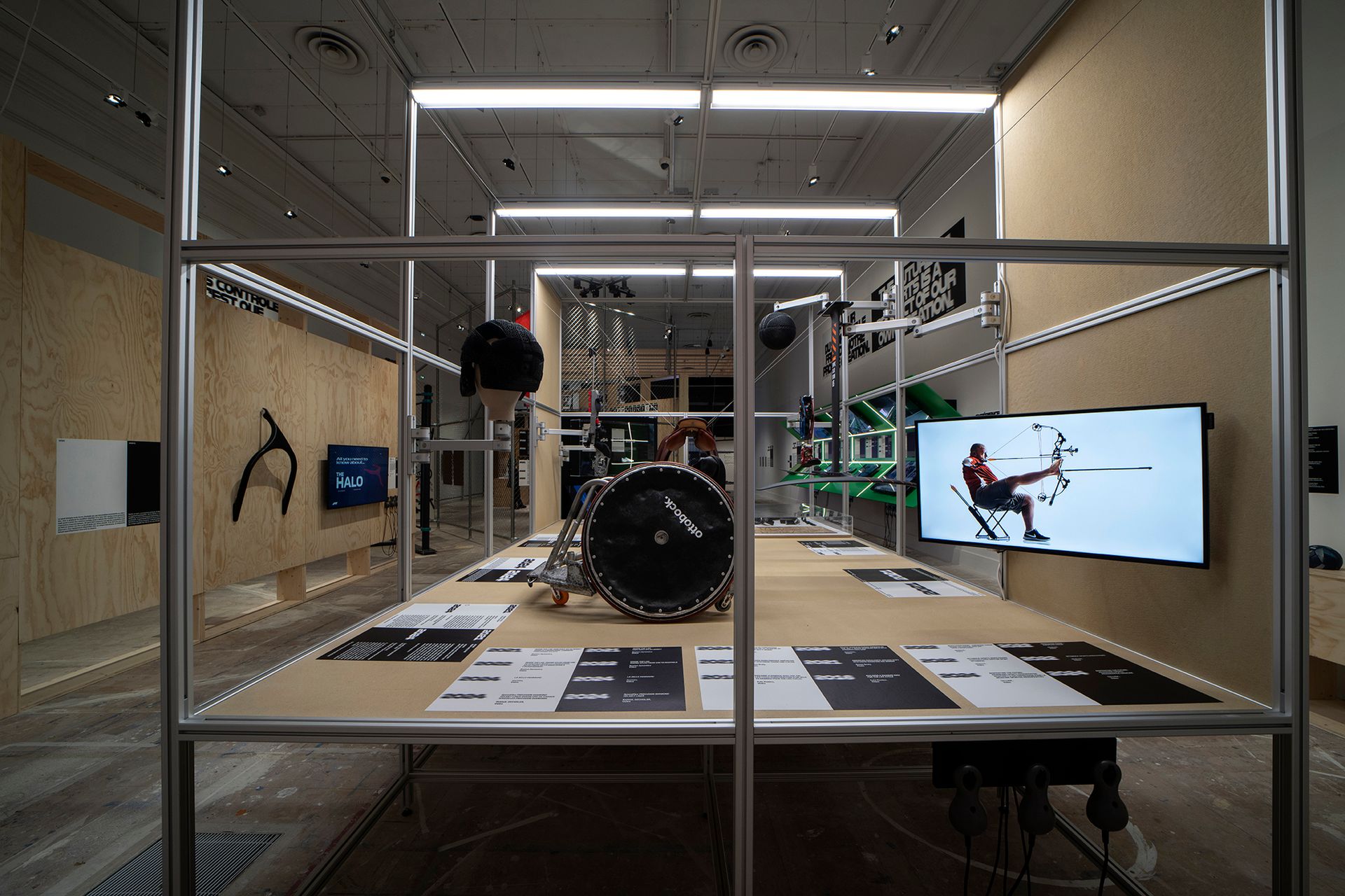 Vue de l’exposition « MATCH : Design & sport - une histoire tournée vers le futur », scénographie Konstantin Grcic. © Photo Didier Plowy pour GrandPalaisRmn, 2024