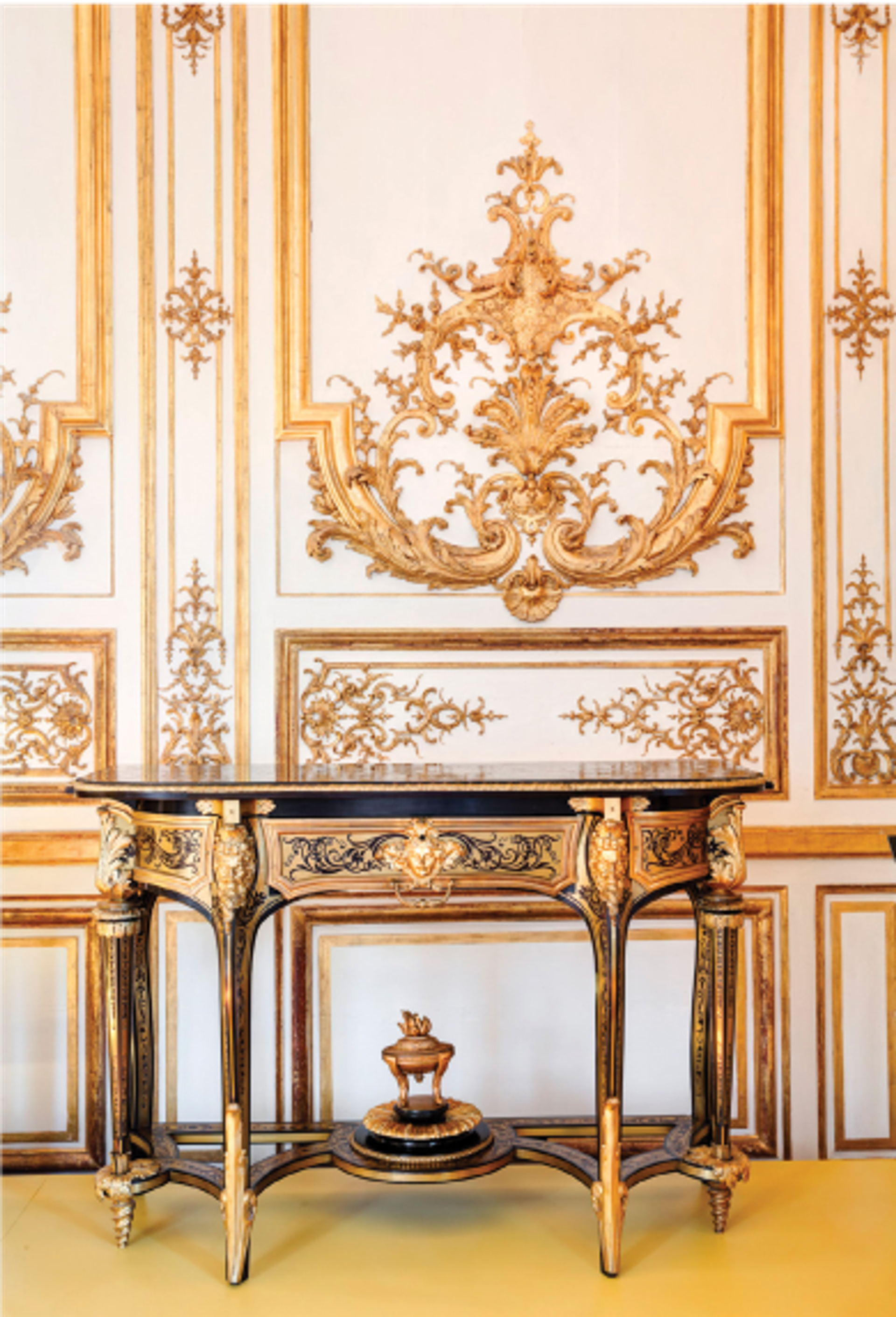 Pour la première exposition dédiée à André Charles Boulle en France, Mathieu Deldicque, directeur du musée Condé au sein du château de Chantilly, a transformé les contraintes du lieu en atouts, tant pour le public que pour la communauté scientifique. Si le musée du Louvre ou le château de Versailles avaient présenté une rétrospective du travail de l’ébéniste, ils auraient probablement disposé un plus grand nombre de pièces dans des galeries épurées avec une scénographie moderne. En choisissant les Grands Appartements pour cette exposition, son commissaire offre un écrin contemporain à une cinquantaine de créations, permettant de découvrir pour la première fois les œuvres conservées au Rijksmuseum, à Amsterdam, à la Wallace Collection et au Victoria & Albert Museum, à Londres, dans leur environnement naturel. Et la surprise est pour le moins réussie. Espaces obligent, Mathieu Deldicque a dû d’opérer des choix. Par choix justement.