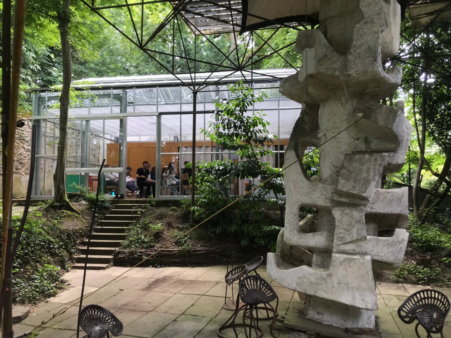 Par-delà la toiture transparente de la serre, le regard plonge directement dans le ciel.« Aujourd’hui, le temps file si vite, estime Natalie Seroussi. Amorcer une conversation, c’est prendre le temps. La conversation devient alors œuvre d’art. »