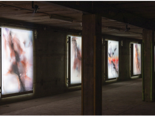 Il s’agit de superposer les territoires du visuel et du sonore. L’exposition est conçue comme un espace de dialogue entre son et image. Elle est structurée en trois parties, trois motifs sonores qui correspondent à trois types d’espace : l’effet Larsen, qui naît d’une trop grande proximité entre deux émetteurs, traduit la saturation, le manque d’espace; la polyphonie, c’est l’entrelacement de plusieurs sources, et, ici, la manière dont les artistes donnent une voix au végétal, au minéral, à la machine, à tout ce qui n’est pas humain; enfin, le son primordial, celui du big bang, que la tradition hindoue appelle « Om », renvoie à la recherche d’un ailleurs chez les artistes contemporains – qu’il se trouve dans l’infiniment grand, c’est-à-dire la dimension cosmique, ou dans ce que j’appelle le « regard moléculaire ». Au fil du parcours, qui est assez dirigé, on passe d’un premier étage très urbain, saturé et assez claustrophobique, à un espace très ouvert, comme une étendue désertique jalonnée d’oasis. Plus concrètement, on entre dans l’exposition en traversant un long tunnel où l’on est plongé dans une pièce sonore d’Emeka Ogboh, basée sur un enregistrement effectué dans les rues de Lagos [Nigeria], et l’on en sort par un étage dédié au minuscule, au microscopique. Dans toute l’exposition, j’essaie de faire en sorte que les sons débordent les uns sur les autres, contrairement à la logique du « black box ».