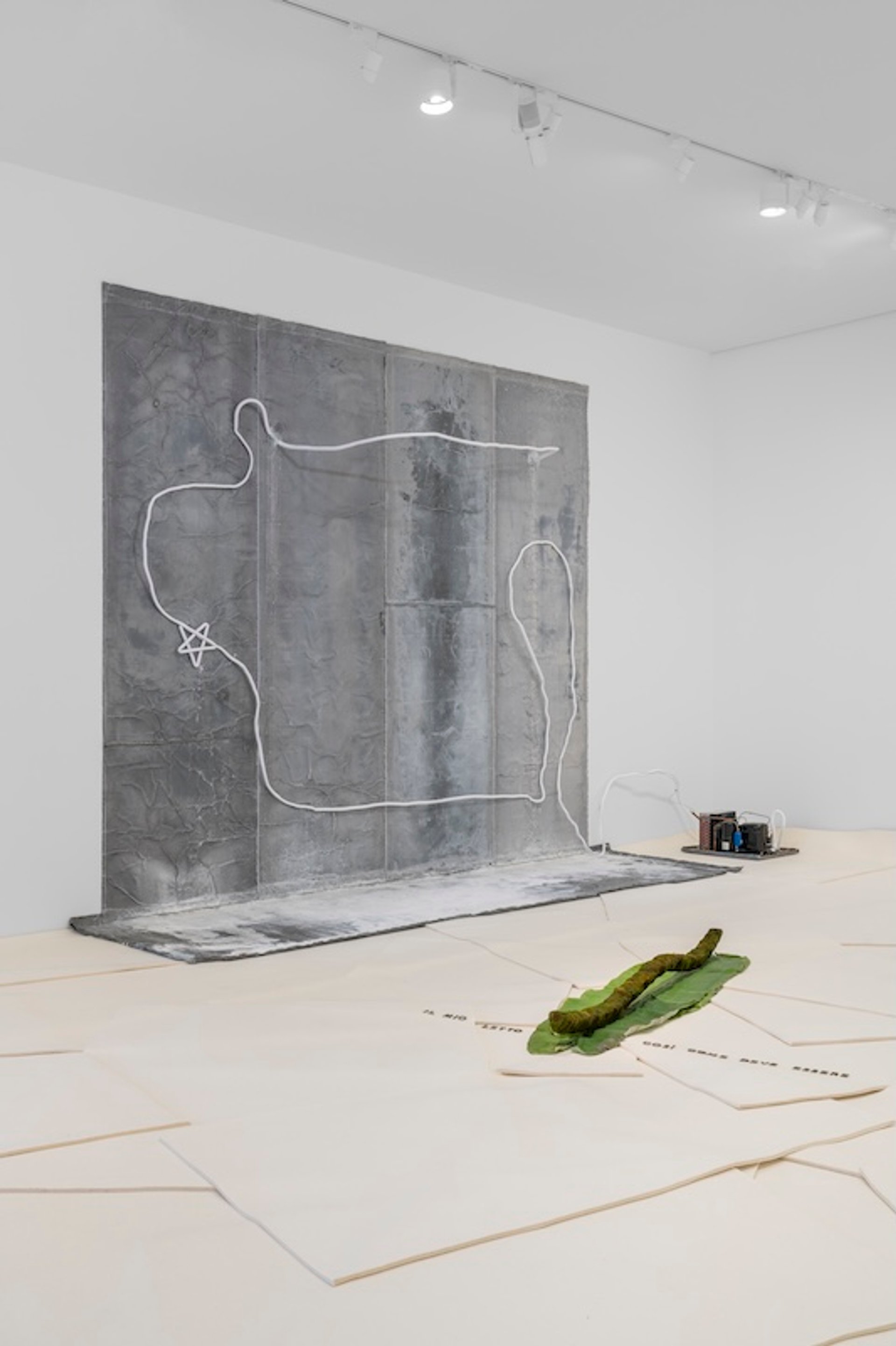 La suite de l’exposition s’organise autour de salles monographiques. Emilio Prini, le plus conceptuel et radical de tous, est montré dans les espaces du bas avec Gilberto Zorio, le plus alchimiste. Mario Merz et Marisa Merz sont exposés ensemble. Certes, la galerie souligne leurs dialogues, mais une salle unique consacrée à Marisa Merz (la seule femme de ce groupe) aurait affirmé toute la force indépendante de son œuvre (comme l’a montré la récente exposition Marisa Merz au LaM, à Villeneuve d’Ascq).