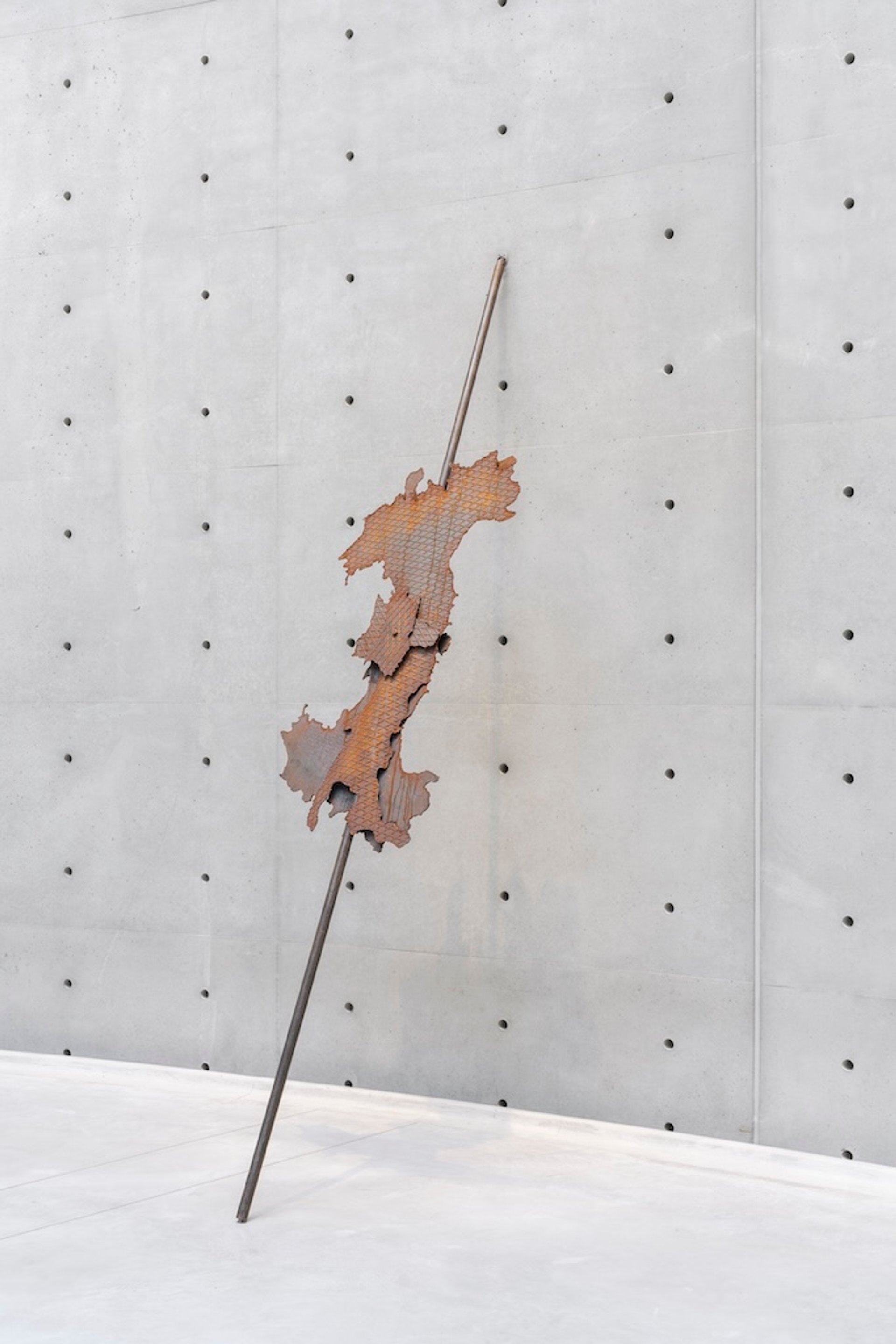 Luciano Fabro, Italia all’asta (Italie aux enchères), 1994, fer, 335 × 70 × 10 cm. Prêt de Fondazione per l’Arte Moderna e Contemporanea CRT, Turin. Photo : Nicolas Brasseur / Pinault Collection.