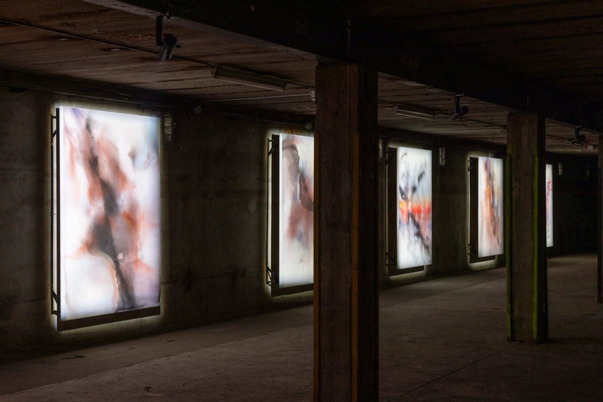 Série de Resonance Paintings présentées dans le cadre de Resonance Project : The Cave à la Biennale de Lyon, 2024. © Oliver Beer. Image/ Jair Lanes