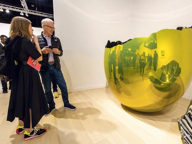 À l’entrée, le public est accueilli par deux grandes toiles aux formes anthropomorphiques signées de la Française Carlotta Bailly-Borg, sur le stand de la galerie Ruttkowski;68 (Cologne, Düsseldorf, New York, Paris), dont l’une d’elles a trouvé preneur pour 12 800 dollars (11 788 euros). Un peu plus loin, la galerie Sorry We’re Closed (Bruxelles) présente notamment les cadres sculptés de Karel Dicker vendus autour de 4 500 euros, ainsi que les acryliques et pastels sur toile fraîchement réalisés par Anastasia Bay, dont deux œuvres sont parties pour 11 000 et 42 000 euros.
