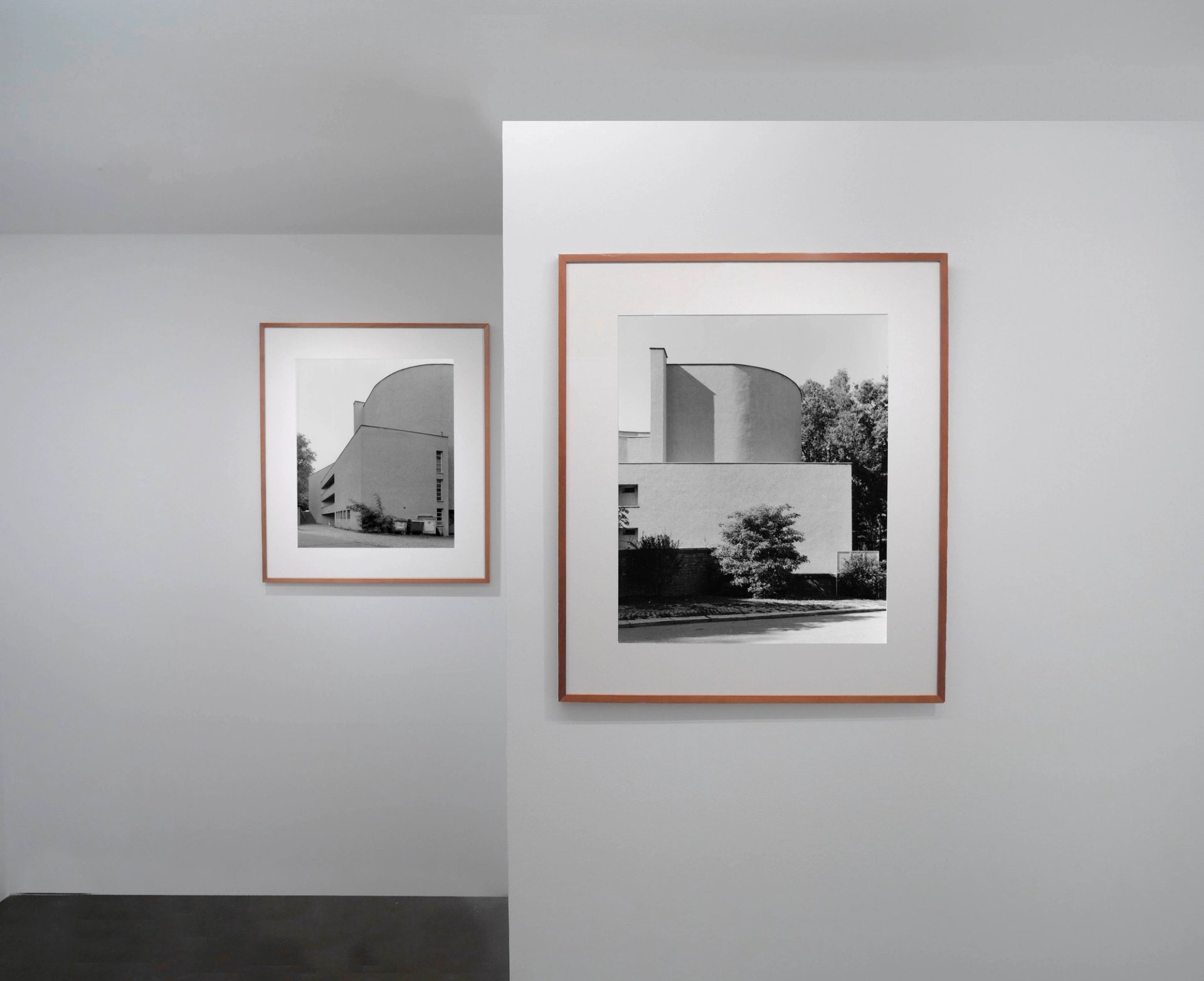 Irmel Kamp est née dans l’ouest de l’Allemagne, dans une région frontalière de la Belgique. La passion de l’architecture l’a conduite à la photographie et, depuis la fin des années 1970, elle photographie exclusivement des bâtiments. Elle travaille par thèmes et domaines délimités en noir et blanc avec un appareil de moyen format. La première de ses séries, elle l’a consacrée aux façades en zinc autour de la Calamine. Ces dallages, qui protègent du vent, font un habillage moderne à des maisons traditionnelles ou aux églises. Pour les photographier, Irmel Kamp a sciemment évité le soleil et privilégié les ciels nuageux qui donnent aux images la couleur du zinc. À partir de ce matériau, produit dans la région photographiée, la photographe engage une réflexion d’ordre historique et sociologique, ainsi que sur son médium. Les deux autres séries présentées dans l’exposition traitent de bâtiments modernes des années 1930 à Bruxelles, et des architectures modernes dans quelques villes d’Europe. Il n’y a pas de critère hiérarchique dans le choix des bâtiments, une station-service compte autant qu’une villa. Si la figure humaine n’apparaît jamais, les constructions ne sont pas coupées de leur environnement et apparaissent comme des lieux de vie plutôt que comme des sculptures. Le déplacement à travers une région, un continent et leur histoire semblent l’emporter sur le devoir d’inventaire.