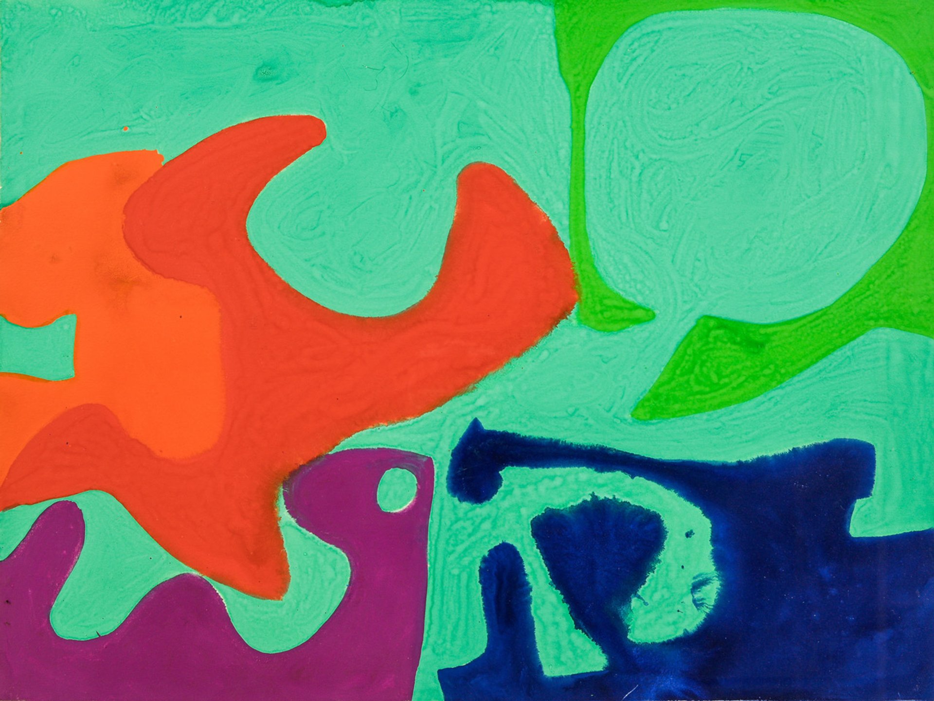 Patrick Heron,Theme Dissolving - Ice Green with Scarlet and Purple, 1969, gouache sur papier. Courtesy Marambat-de Malafosse