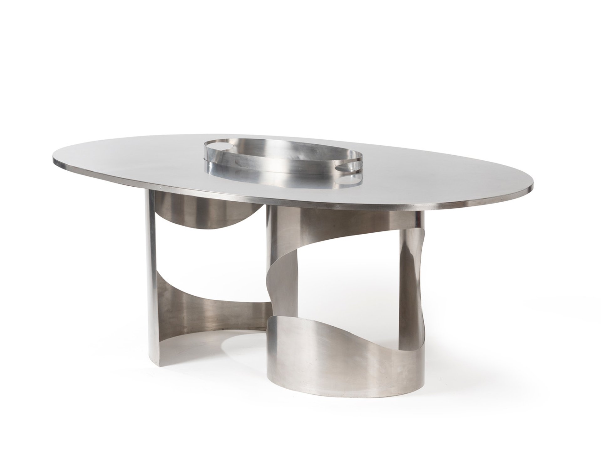 Maria Pergay, table de salle à manger modèle Saturne, vers 1968. Courtesy Drouot estimations