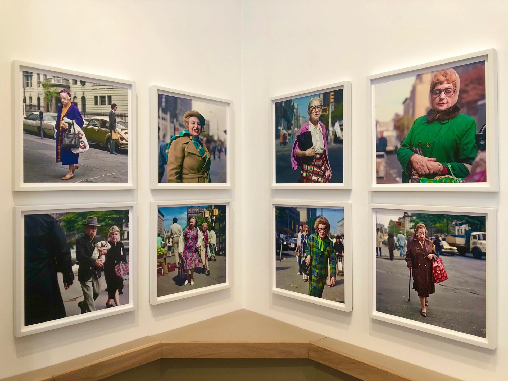 Catherine DeLattre a commencé son travail de photographe dans les années 1970, d’abord sur les plateaux de cinéma et ensuite chez Magnum. Elle photographie des êtres humains, des intérieurs et des paysages. Au nombre de ceux qui l’ont marquée, elle cite entre autres Walker Evans, Robert Frank, Joel Meyerowitz ou Garry Winogrand. On la découvre à Paris avec cette série Shoppers of Broadway Upper West Side, 1979-1980. Elle habitait alors cette partie de Manhattan et ne sortait jamais sans son appareil photo, un Mamiya TLR qui, avec son viseur sur le sommet du boîtier et ses deux objectifs, rendait son activité moins évidente aux yeux des passants. Les sujets sont très principalement des femmes, majoritairement de la classe moyenne, et généralement âgées, très soignées, très coiffées. Les couleurs vives de leurs vêtements explosent au milieu d’un décor urbain et d’individus aux couleurs passées quand ils ne sont pas carrément flous. Ces femmes sont des héroïnes du quotidien et leur expression est, sauf rare exception, grimaçante. Bien que capturées dans la grande tradition de la « street photography » américaine, elles semblent se tenir dans un studio devant une transparence. En les isolant dans la foule et en les réunissant dans une série, Catherine DeLattre a constitué un précieux témoignage sur un monde en train de s’effacer.