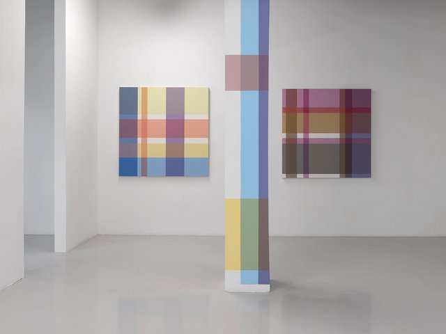 C’est une exposition à 2+1, deux vivants et un disparu. C’est au cours d’une conversation entre Liam Gillick et Noah Barker que le nom de Ronald Jones est sorti, un artiste et critique que tous deux admirent et dont Gillick fut l’ami. Jones eut une carrière d’artiste relativement confidentielle, mais fut un enseignant et un conférencier influent et collabora à d’importants cercles de réflexion sur la culture ou le rôle du design. Ce qui réunit les trois artistes est un même intérêt pour les codes et la modélisation. Jones est représenté par quatre petits dessins sur calque représentant les motifs de carrés, losanges ou croix inspirés des signaux d’alerte maritime, ainsi que par une description de projet présentée sur banderoles. Cette description avait été adressée à Gillick dans le cadre d’une légendaire exposition conçue par celui-ci et Philippe Parreno : « Le Procès de Pol Pot ». Les dessins évoquent, eux, des compositions suprématistes mises à plat.