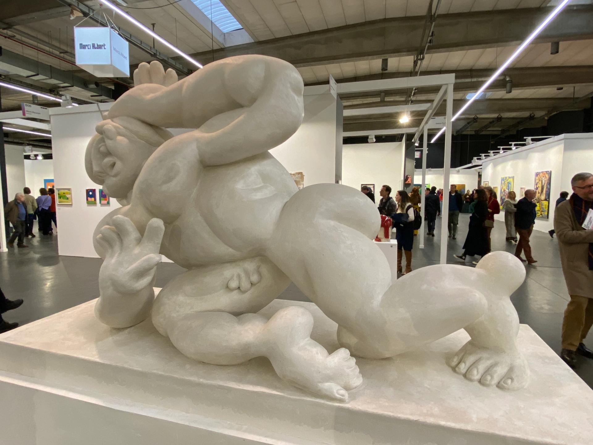Dès l’entrée, les visiteurs étaient accueillis par deux galeries de référence, Lelong & Co. (Paris) d’une part, et de l’autre Guy Pieters (Knokke), l’un des poids lourds du marché de l’art en Belgique, avec une sélection d’œuvres de choix de James Rosenquist, Yves Klein, Christo, Claudio Parmiggiani, Gilbert & George et deux sculptures de George Segal (affichées aux alentours de 275 000 euros). Les visiteurs ne pouvaient ignorer deux autres stands d’envergure, ceux des galeries anversoises De Zwarte Panter, la plus ancienne enseigne belge en activité, et celle de Maurice Verbaet, qui a consacré tout son vaste espace à la scène anversoise et belge du XXe siècle, avec des solos dédiés à René Guiette, Vic Gentils, Paul Van Hoeydonck, Hugo Claus et Marcel Mariën. Il a aussi proposé un focus sur l’œuvre de Pol Mara, artiste pop du cru qui eut son succès à l’époque et qu’une nouvelle génération commence à redécouvrir.