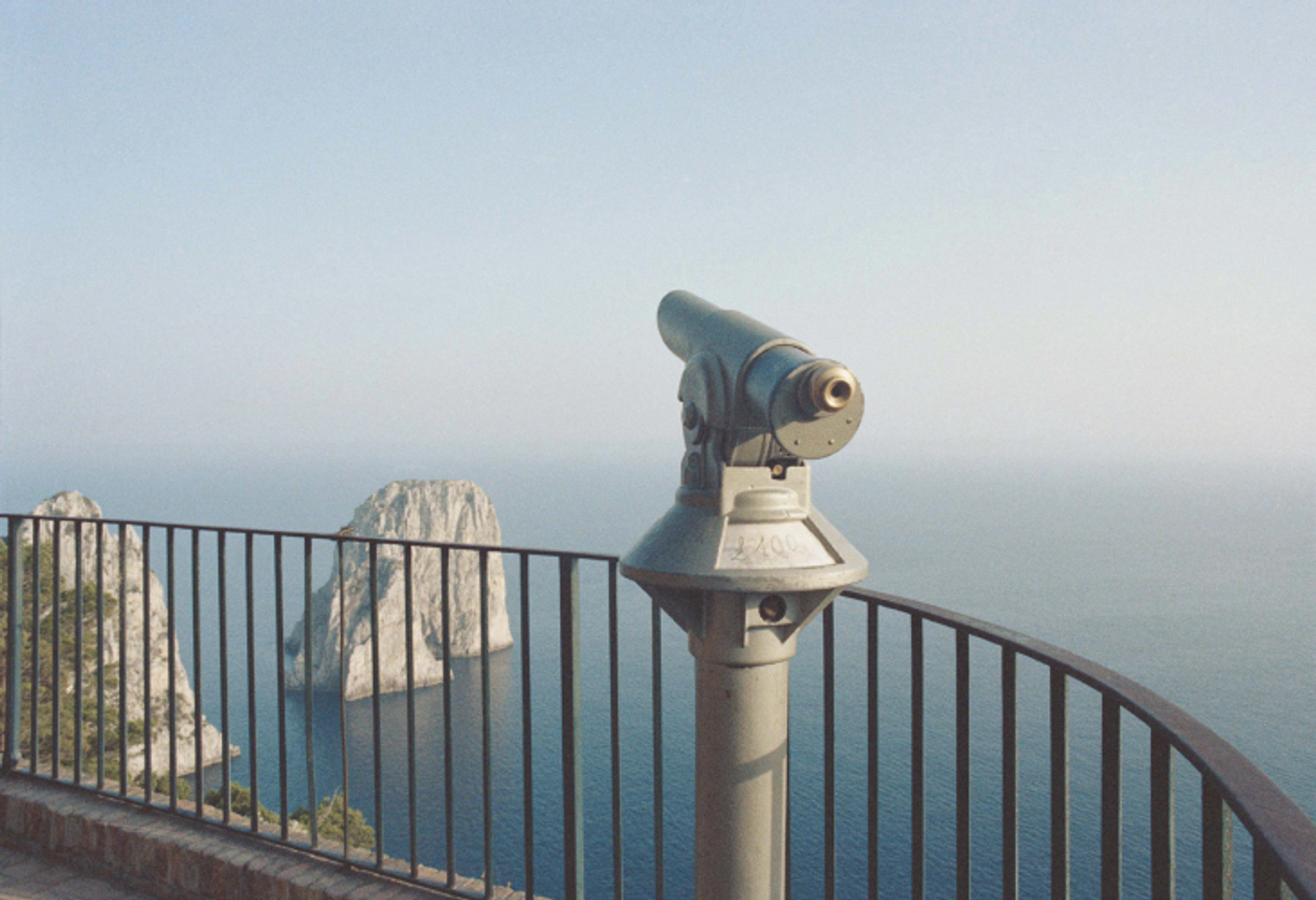 Luigi Ghirri s’intéresse aux aménagements touristiques, aux lunettes de vue devant la mer, aux fêtes foraines sur la plage, aux publicités se déployant devant des paysages, aux faux palmiers, mais aussi aux vrais. Les personnes sont souvent vues de dos, telle cette femme contemplant la Vénus d’Urbin de Titien aux Uffizi, à Florence, dont la tête vient opportunément cacher le sexe ; ces deux femmes âgées coiffées d’un bob blanc admirant Rome depuis les hauteurs, appuyées sur une balustrade ; ou ce couple enlacé regardant la Giudecca et San Giorgio Maggiore à Venise. Dans une autre image, c’est la place Saint-Marc qui tangue dangereusement dans une boule à neige. Le voyage est encore implicite dans une série de photographies de cartes de géographie. Cette balade qui touche au banal compte 130 clichés sélectionnés par le commissaire James Lingwood, lequel n’a pas fait l’impasse sur les images de montagnes, parfois prises en Suisse.
