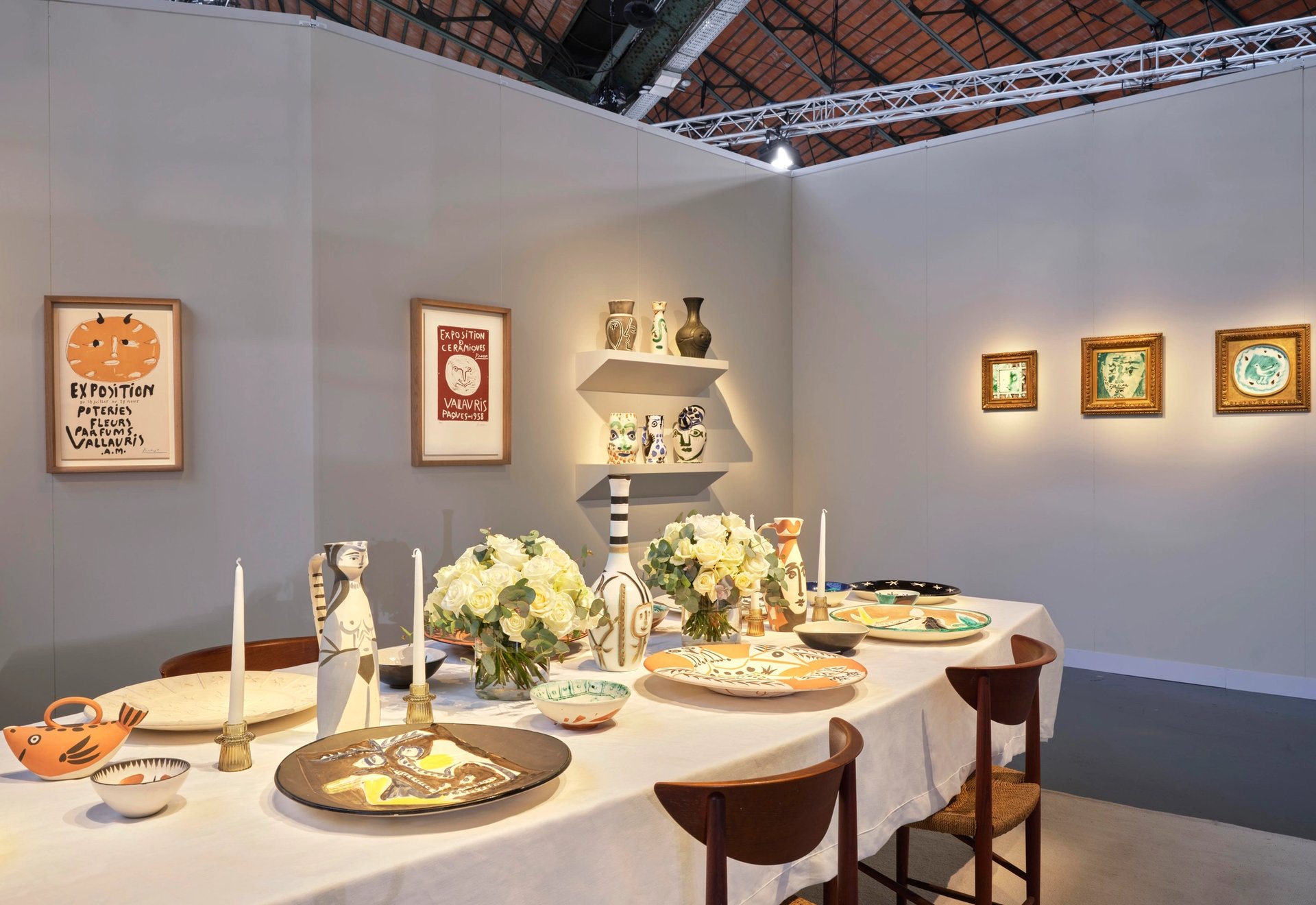 Outre Jun Kaneko, deux autres présentations individuelles émergent de la manifestation. D’abord l’exceptionnel ensemble que la galerie Hélène Bailly consacre à Picasso et que l’on aurait très bien pu voir à la BRAFA, où l'enseigne est d’ailleurs aussi présente. Il s’agit d’un hommage à son travail de céramiste à Vallauris dans l’atelier Madoura des Ramié. Dressée au centre du stand, la table n’attend plus que les convives. Toute la vaisselle utilitaire – assiettes, plats, cruches, pots – est due à Picasso, alors que d’autres de ses objets décoratifs sont accrochés aux murs de cette salle à manger reconstituée.