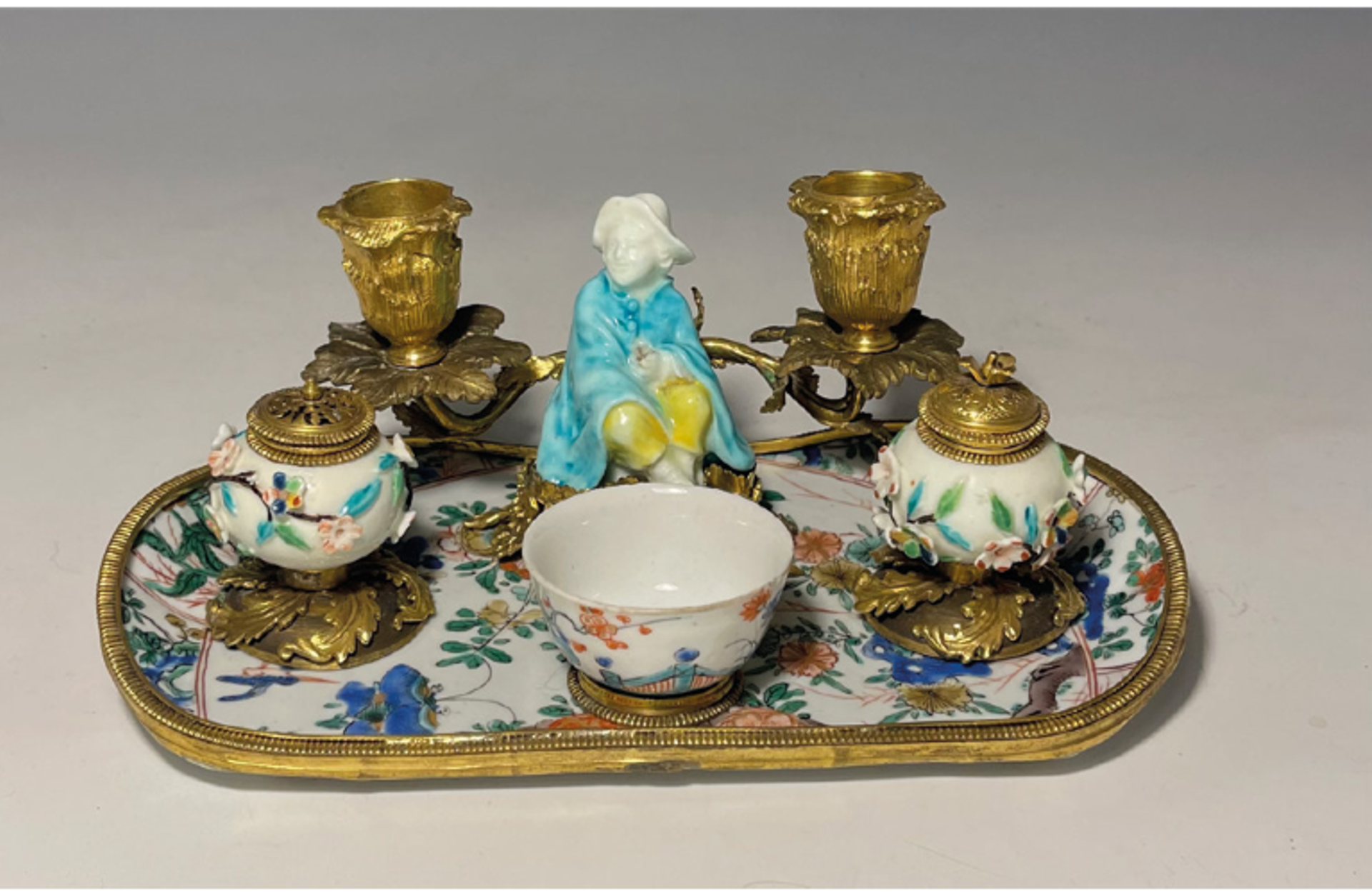 Pour le marchand parisien spécialiste en céramique européenne depuis la Renaissance jusqu’à l’Empire, mais aussi en provenance d’Asie, c’est aussi une première à la Foire bruxelloise. Son stand mettra en avant le savoir-faire des manufactures européennes du XVIIIe siècle, après leur découverte des secrets de la porcelaine asiatique, avec un délicat encrier en bronze, réalisé dans diverses porcelaines de Chine, du Japon, de Chantilly et Mennecy. Un ensemble de porcelaines de Chantilly au blanc laiteux (dit « nigoshide » au Japon) et émaillées façon Kakiemon, une technique entrée au patrimoine culturel nippon et inventée par le potier Sakaida Kakiemon, actif entre 1596 et 1666.