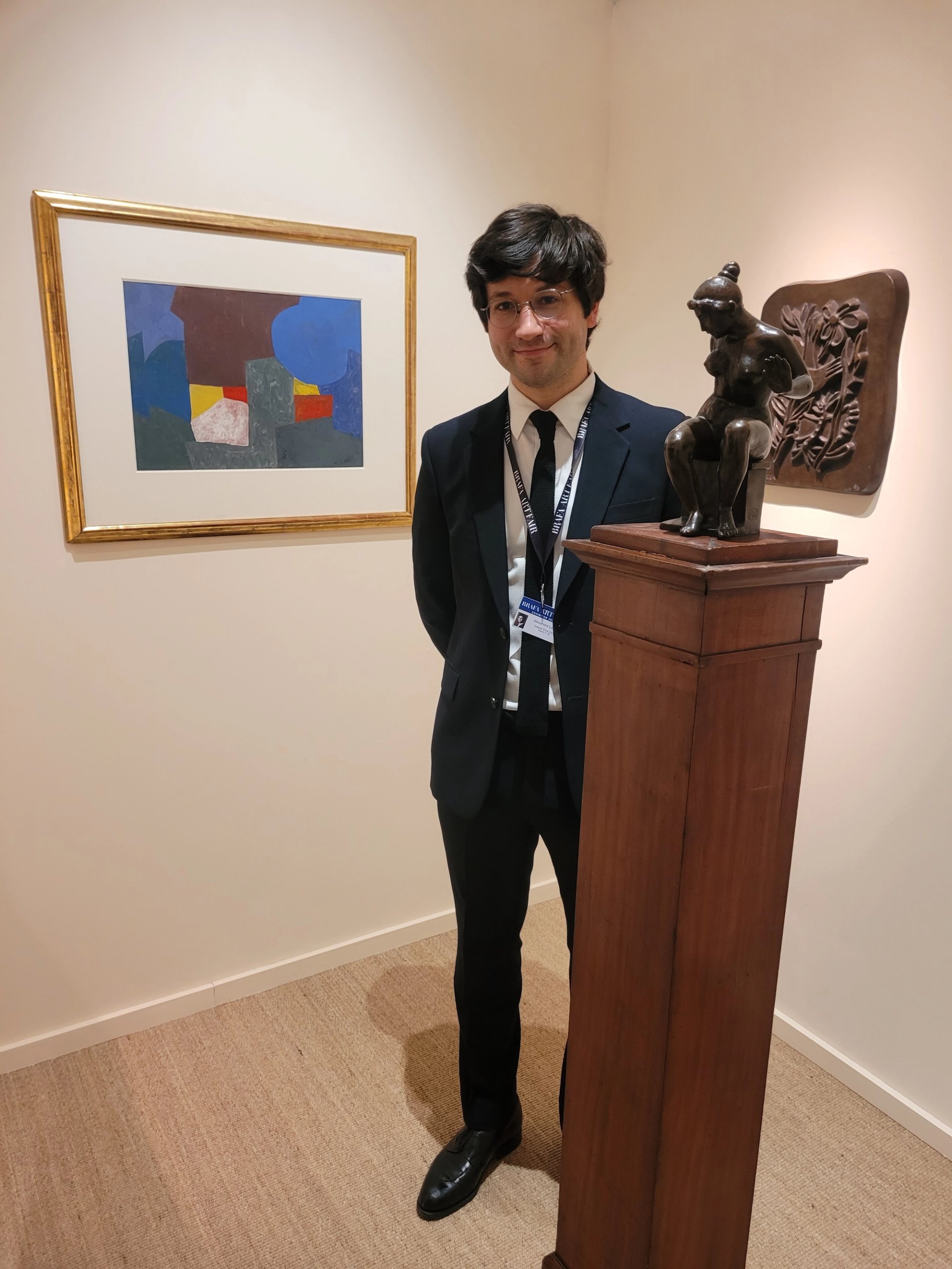 Le marchand Alexandre Lorquin à côté d'une sculpture de Maillol à la BRAFA 2025. Photo A.C.