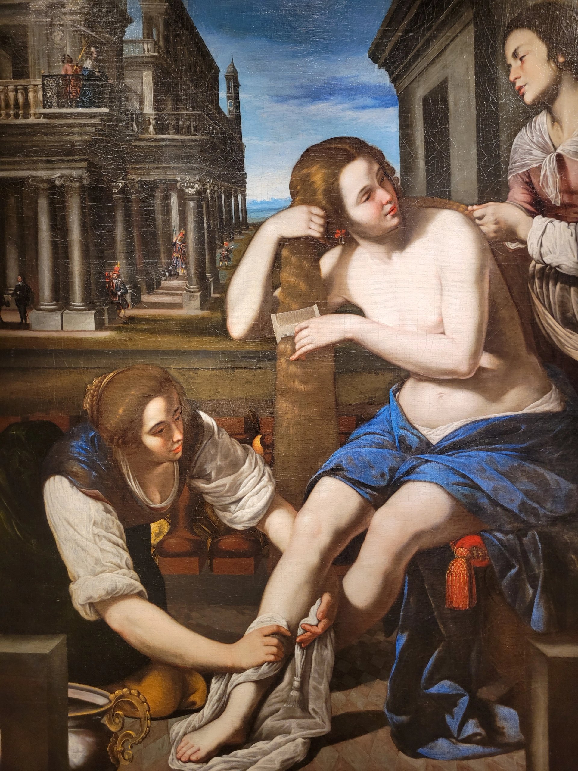 Artemisia Gentileschi et son atelier, Bethsabée au bain, XVIIe siècle. Galerie Lampronti. Photo A.C.