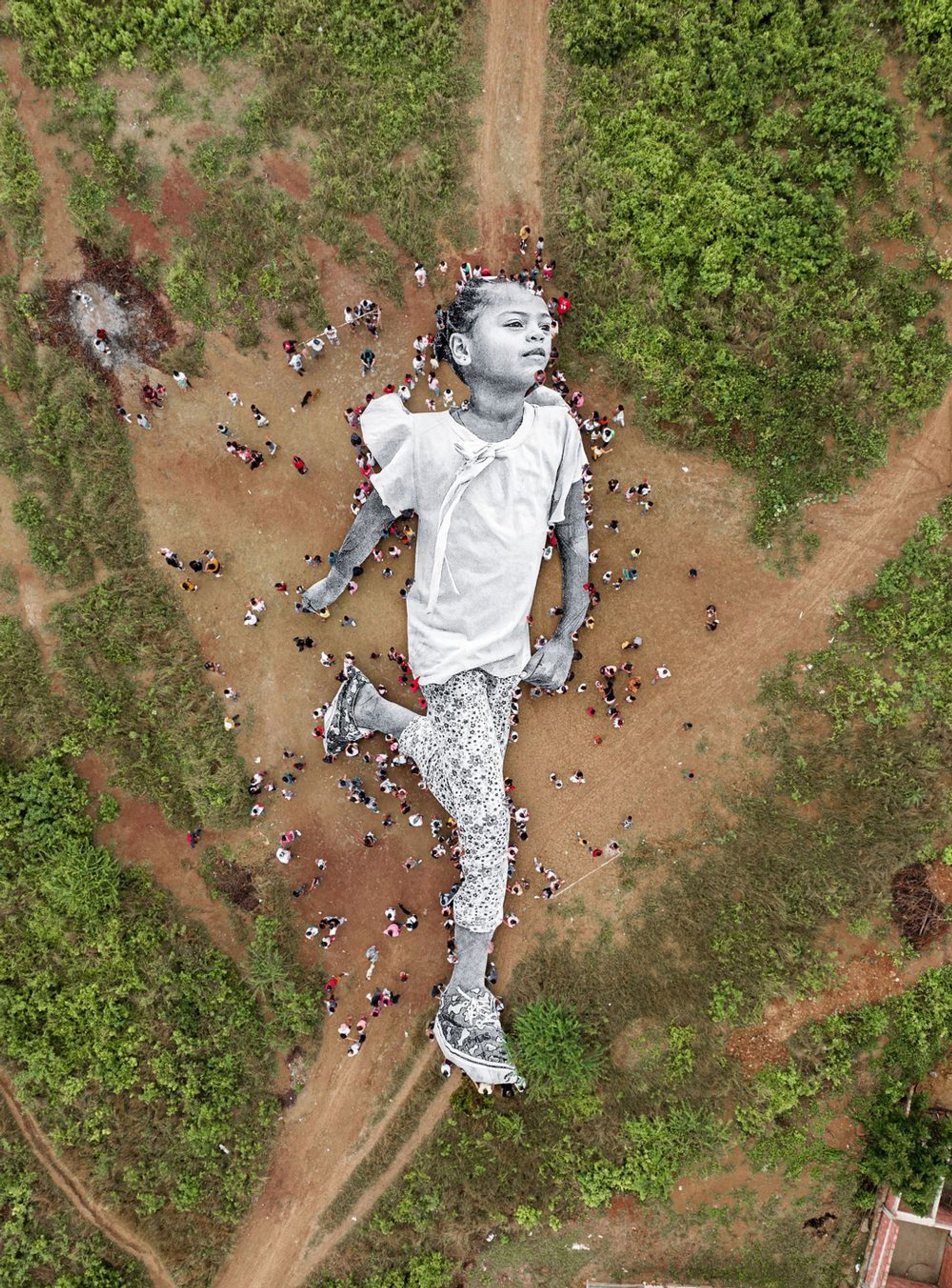 JR, Déplacé·e·s, Andiara, Colombia, 2022, photo marouflée sur toile de coton, 160 × 120 cm. ©JR. Courtesy of the artist and Perrotin