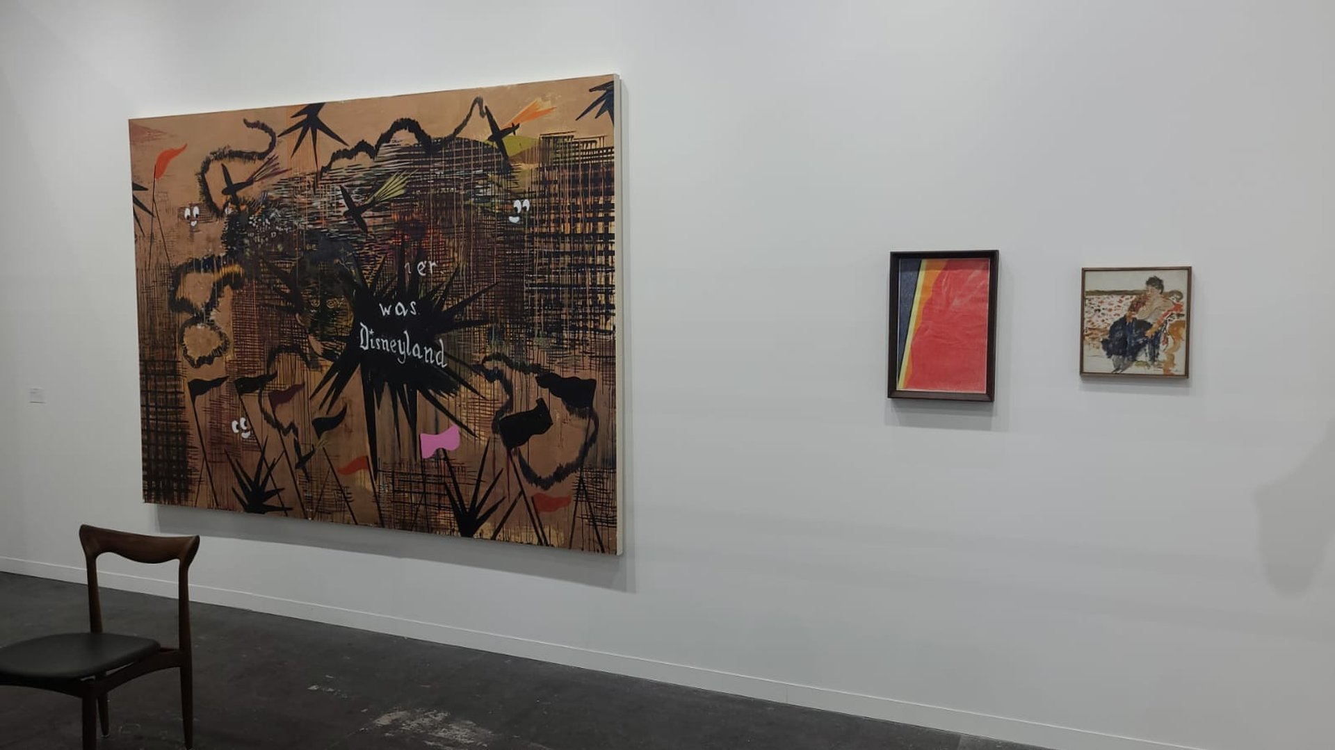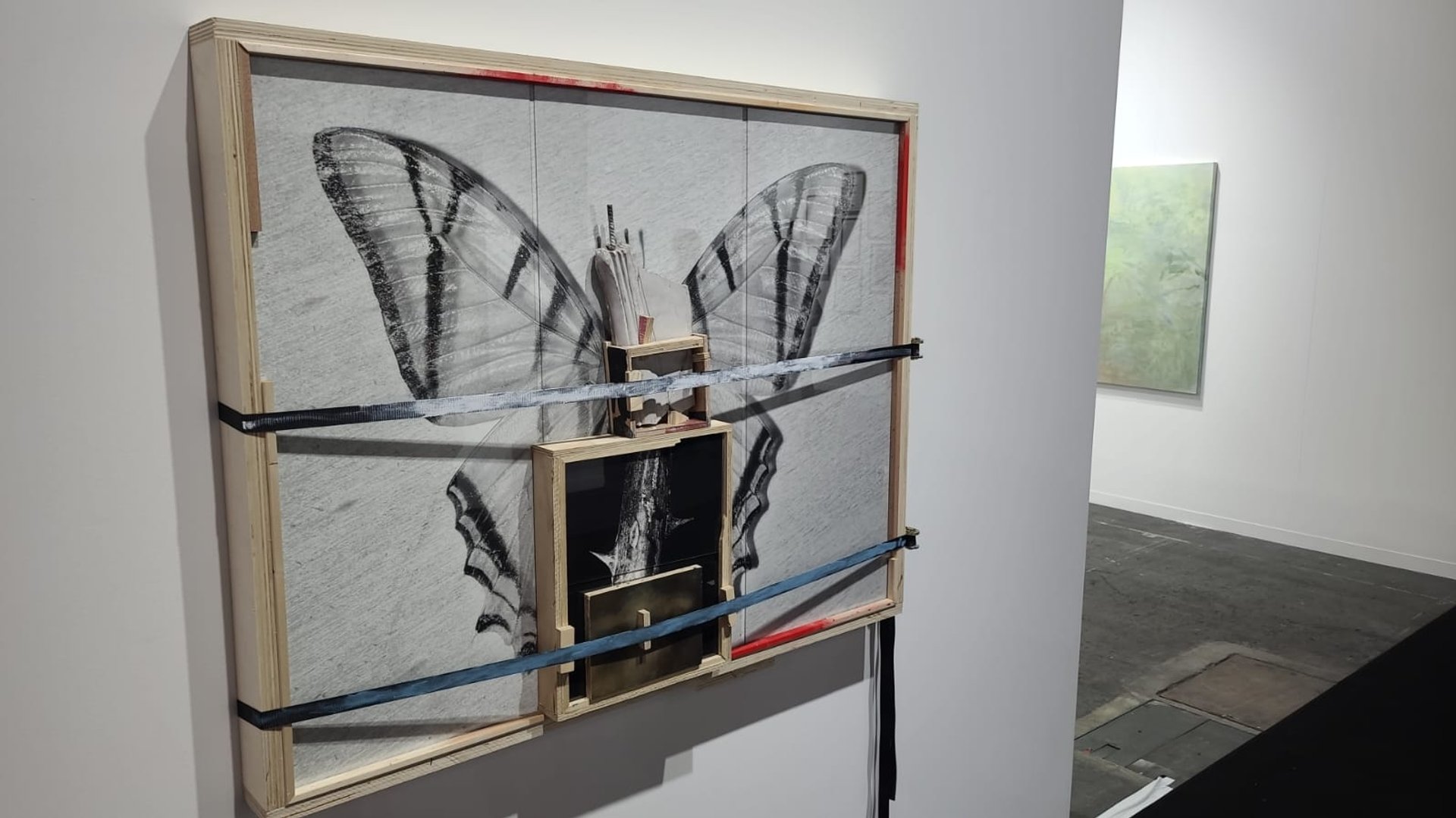 Autre enseigne zurichoise de référence, la galerie Mai 36 a accroché dans l’allée ce drôle d’assemblage (maintenu par des sangles !) de Jacopo Benassi, artiste plutôt punk connu pour ses performances musicales. Faut-il prendre au pied de la lettre l’histoire qu’il nous raconte ici, avec cet « autoportrait à l’hôpital » comprenant un paysage et des taches de sang ? Comptez 15 000 francs suisses, un prix raisonnable à la Foire.