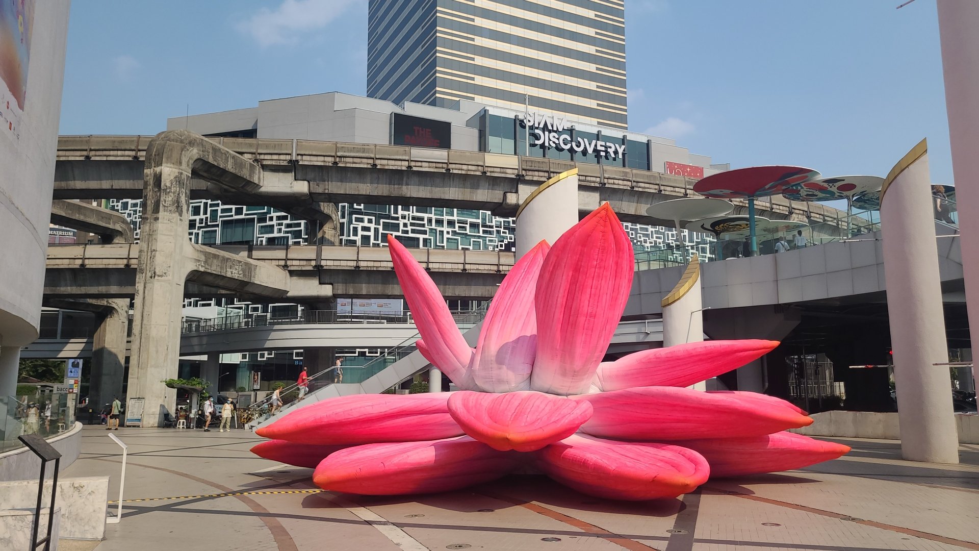 Devant le BACC (Bangkok Art and Culture Centre) et Central World, la Coréenne Choi Jeong Hwa a posé ce lotus géant, symbole asiatique majeur, qui s’ouvre et se ferme au sein de l’espace public. Une invitation à réfléchir à la crise environnementale qui résonne particulièrement à Bangkok, victime de récents pics de pollutions et de fréquentes vagues de chaleur…