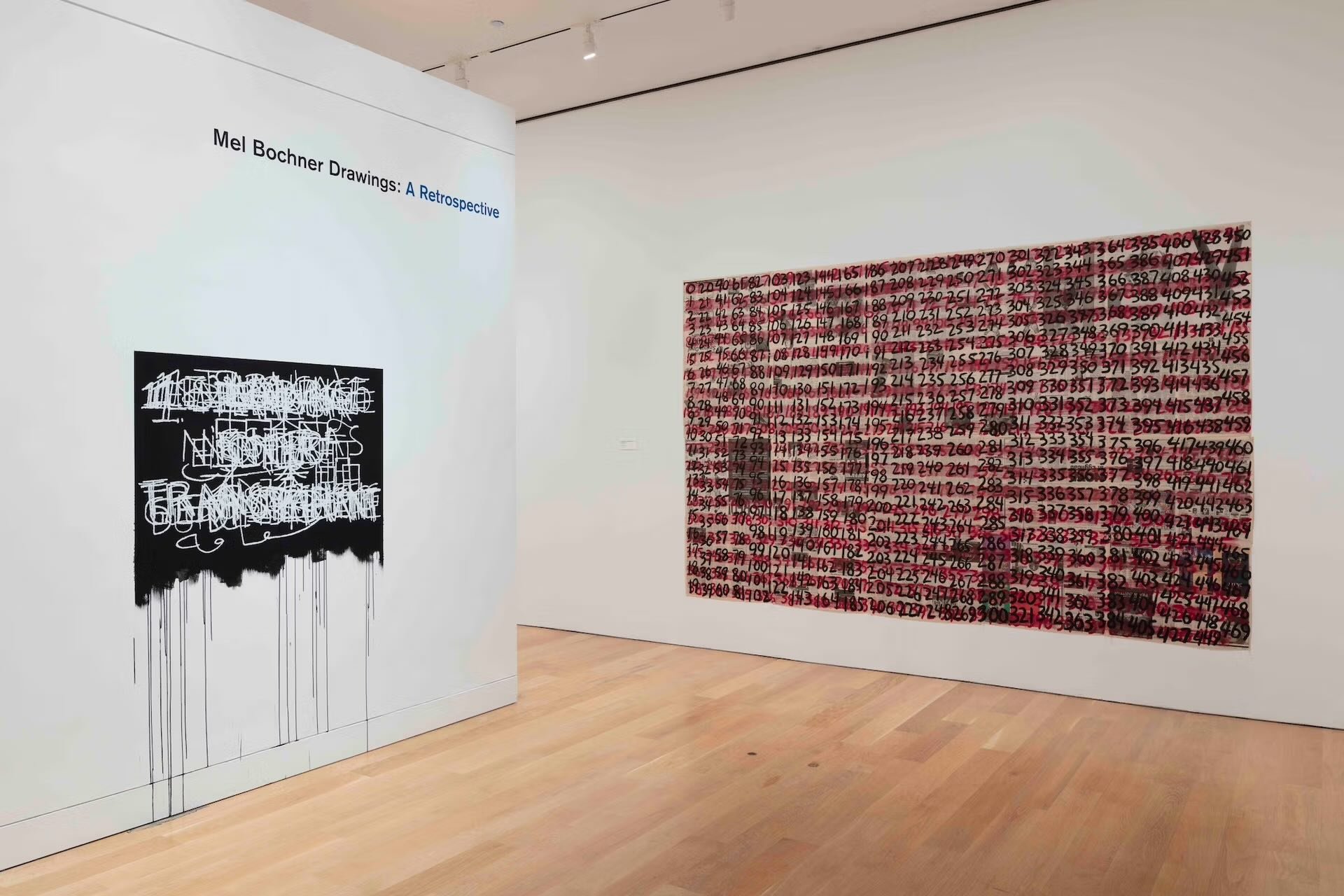 Outre les récentes expositions institutionnelles à la Dia Beacon et à l’Art Institute of Chicago, Mel Bochner a fait l’objet d’importantes expositions personnelles au Jewish Museum de New York en 2014, à la Whitechapel Gallery de Londres, à la Haus der Kunst à Munich et à la Fundação de Serralves à Porto en 2012-2013, à l’université Carnegie Mellon de Pittsburgh en 1985 et à Yale University Art Gallery en 1995. Il a également enseigné à l’université de Yale pendant des décennies, à partir de 1979.