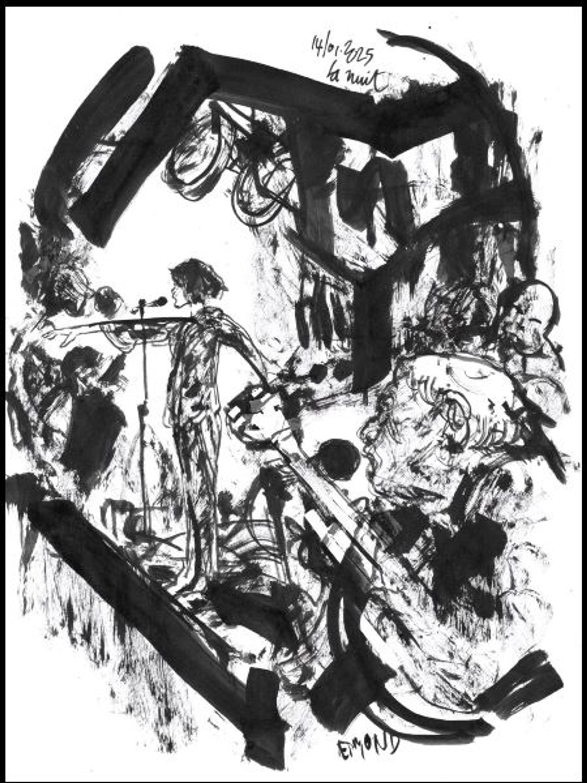 Edmond Baudoin, La Nuit, dessin représentant Nancy Huston sur